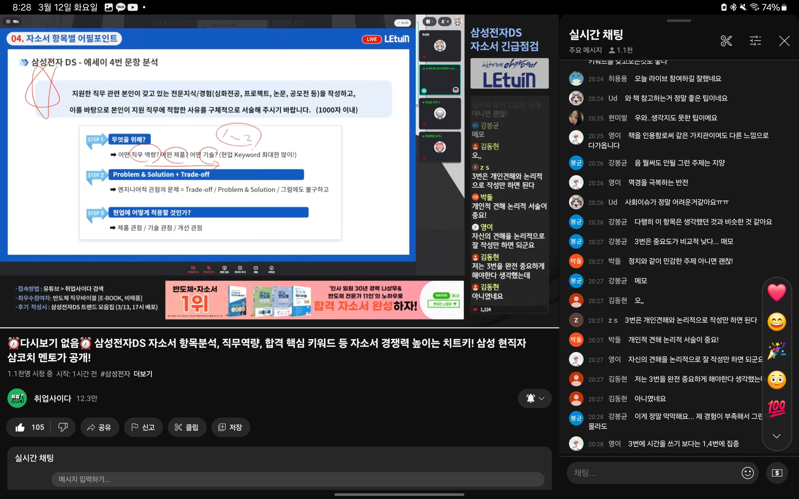제가 3번항목을 되게 어렵게 생각하고 있었는데 현직자분께서 3번항목은 이슈를 하나 잡고 직무와 관련해 글쓰듯이 쓰고 나의 객관적인 견해를 서술한뒤 1번 4번에 더 집중하라는말에 도움이 많이 된것 같습니다.