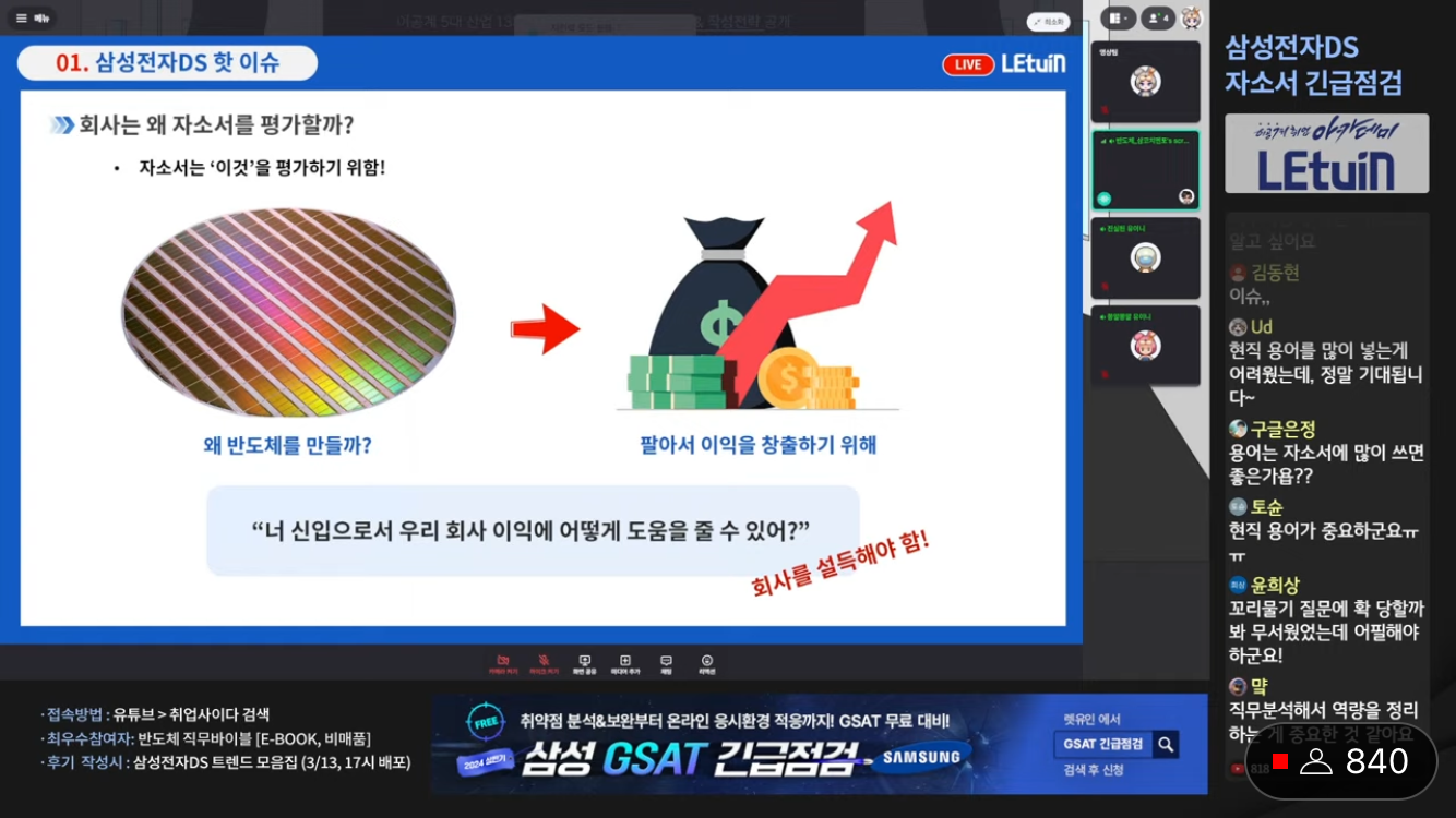 렛유인 생방송 취업특강