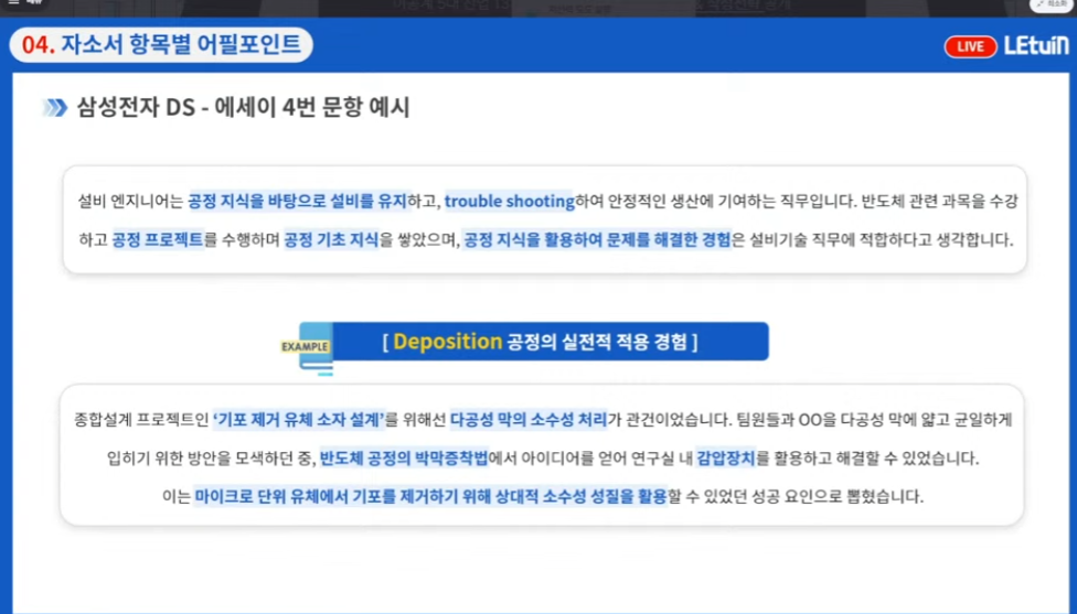 그 중에서도 실제로 자소서 첨삭을 받은 분들의 자소서를 보고 실제 어떻게 적용할 수 있는지 예시를 보여주신것에 감사드립니다.