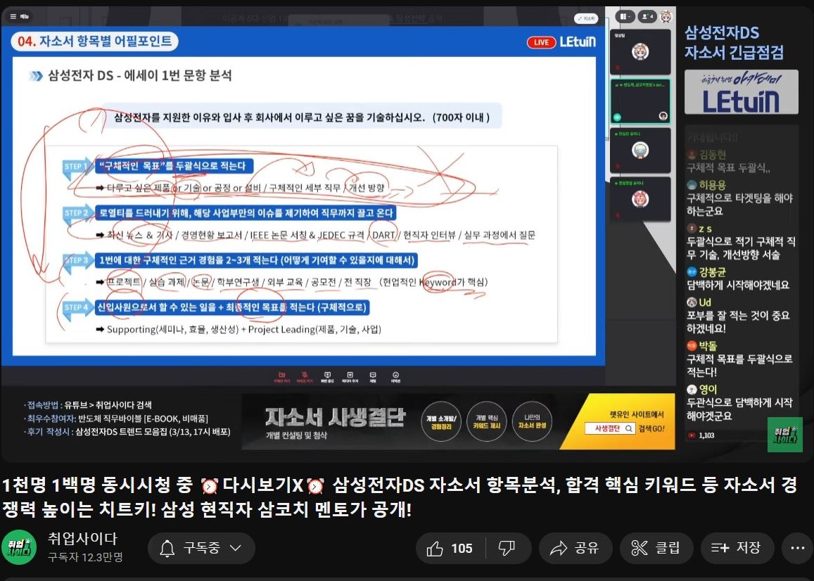 렛유인 생방송 취업특강
