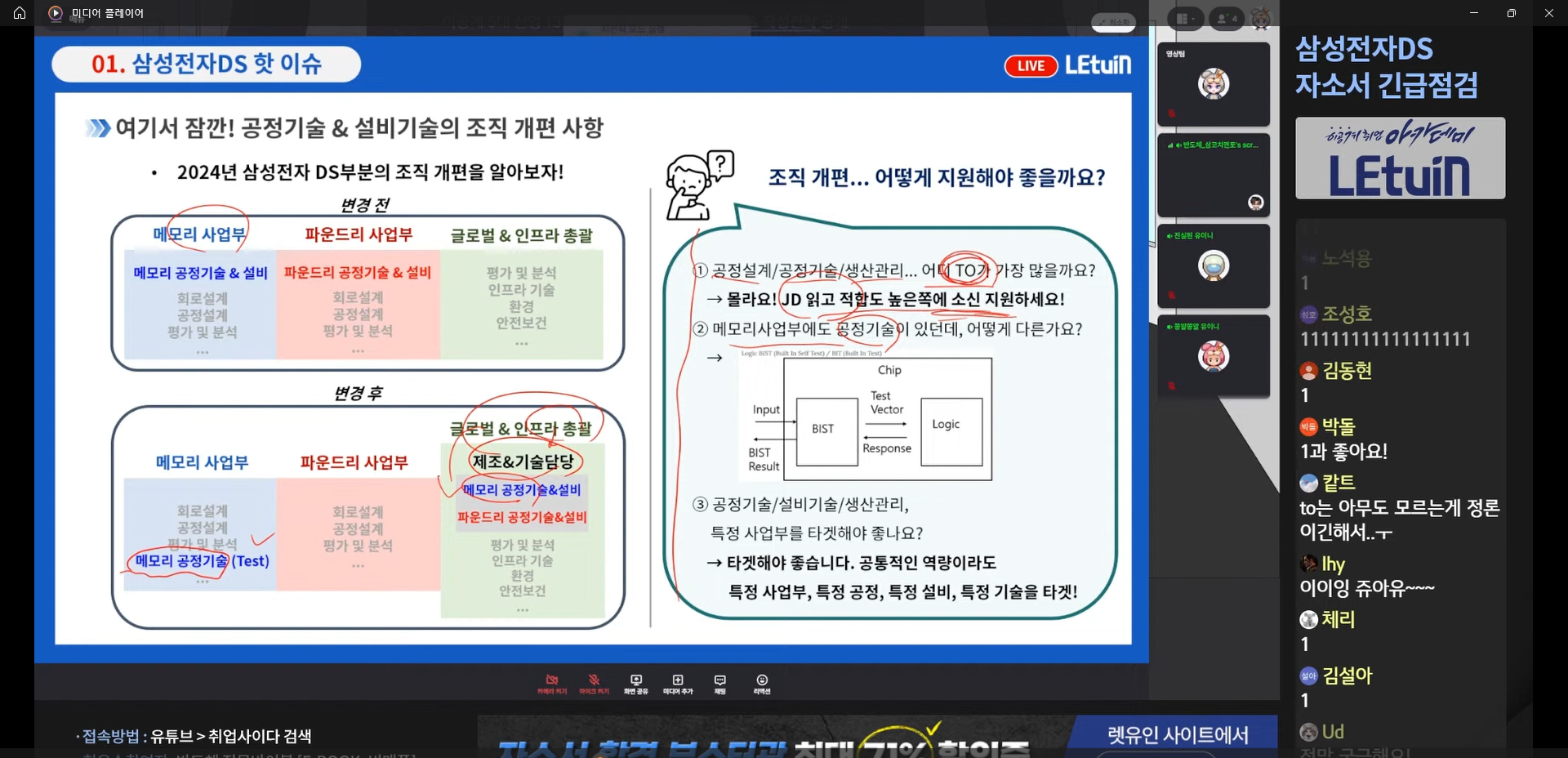 렛유인 생방송 취업특강