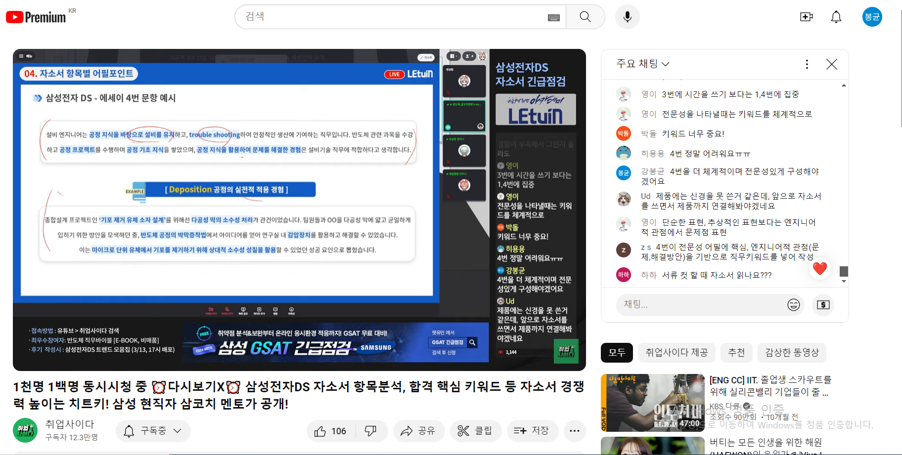 취준이 처음이라 혼자 나아가는 것이 벅찬 상황이였는데 렛유인의 특강 덕분에 한걸음 한걸음 나아 갈 수 있는 것 같습니다. 꼭 성공해서 취준생들의 희망이 되어 보겠습니다. 렛유인의 특강은 무료로 진행된다는 점에서 다른 친구들에게 많이 추천할 것 같아요