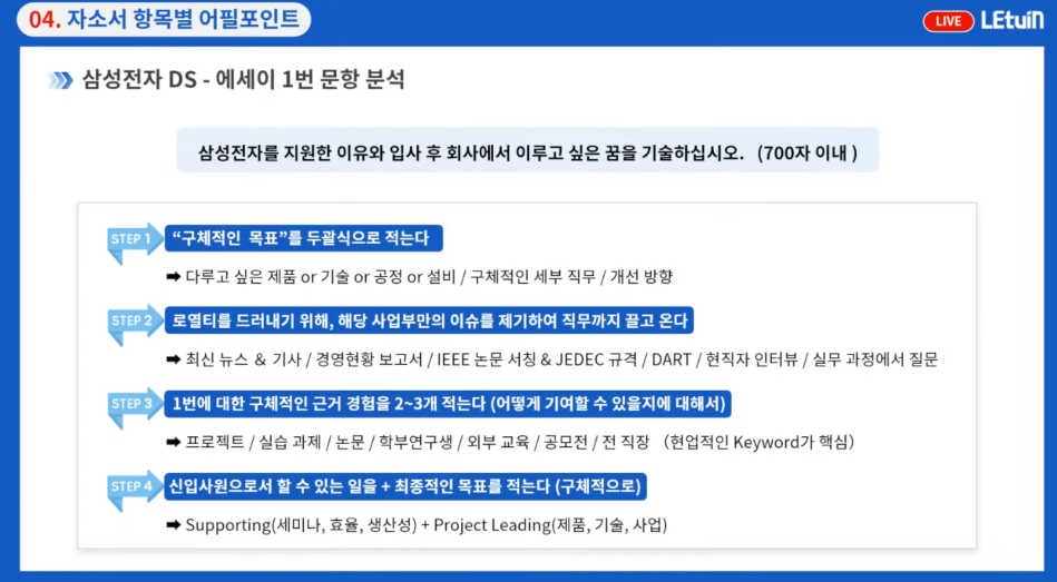 2024 상반기 삼성전자DS 자소서 긴급점검 라이브 후기!!!