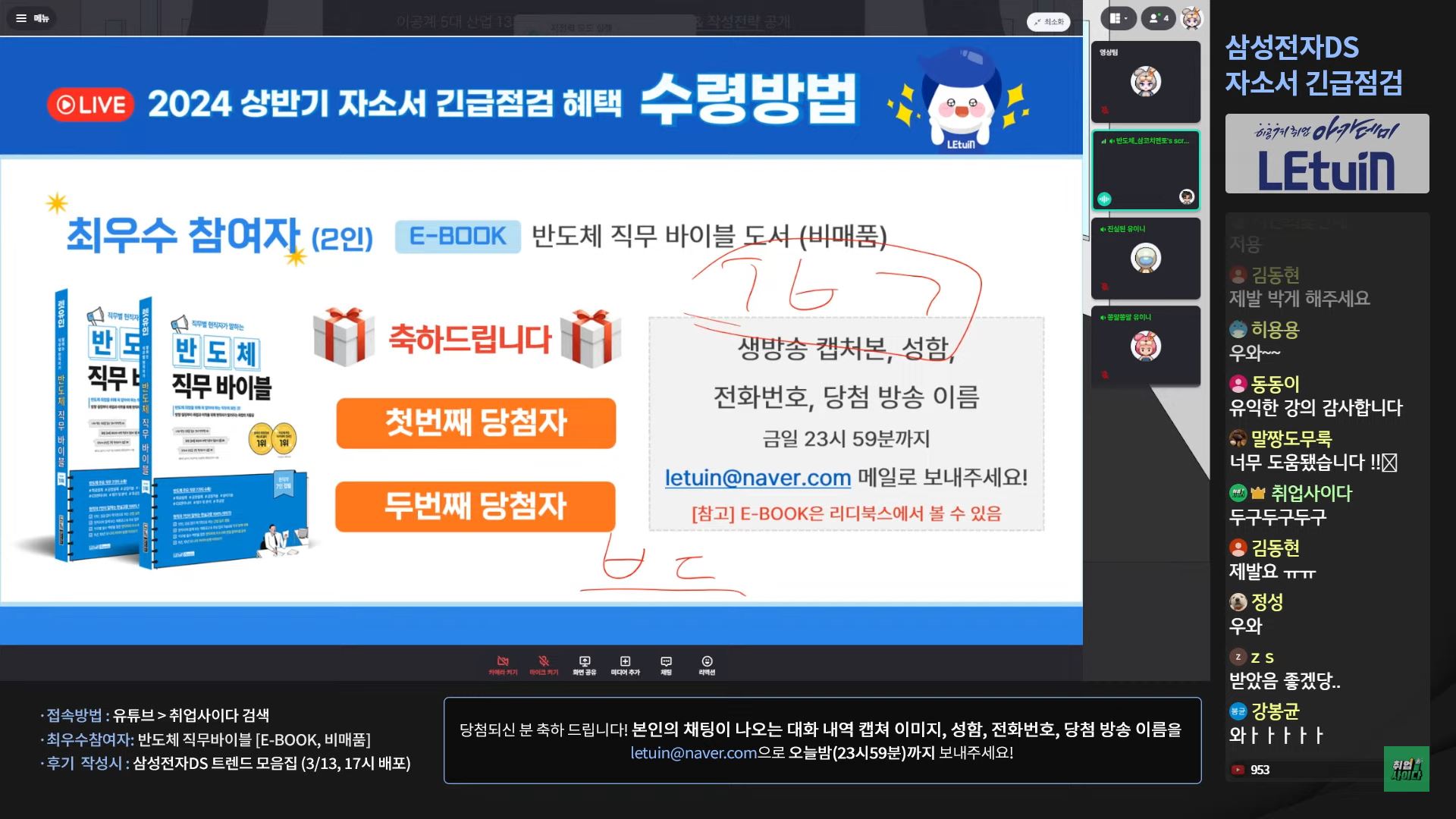 삼성전자 DS 각 직무별 핫이슈, 자소서 어필 현직 용어, 직무역량 3가지, 자소서 어필 point에 대한 강의가 진행되었습니다. 이슈, 현직 용어, 자소서 키워드 등의 중요성도 함께 설명되었습니다.