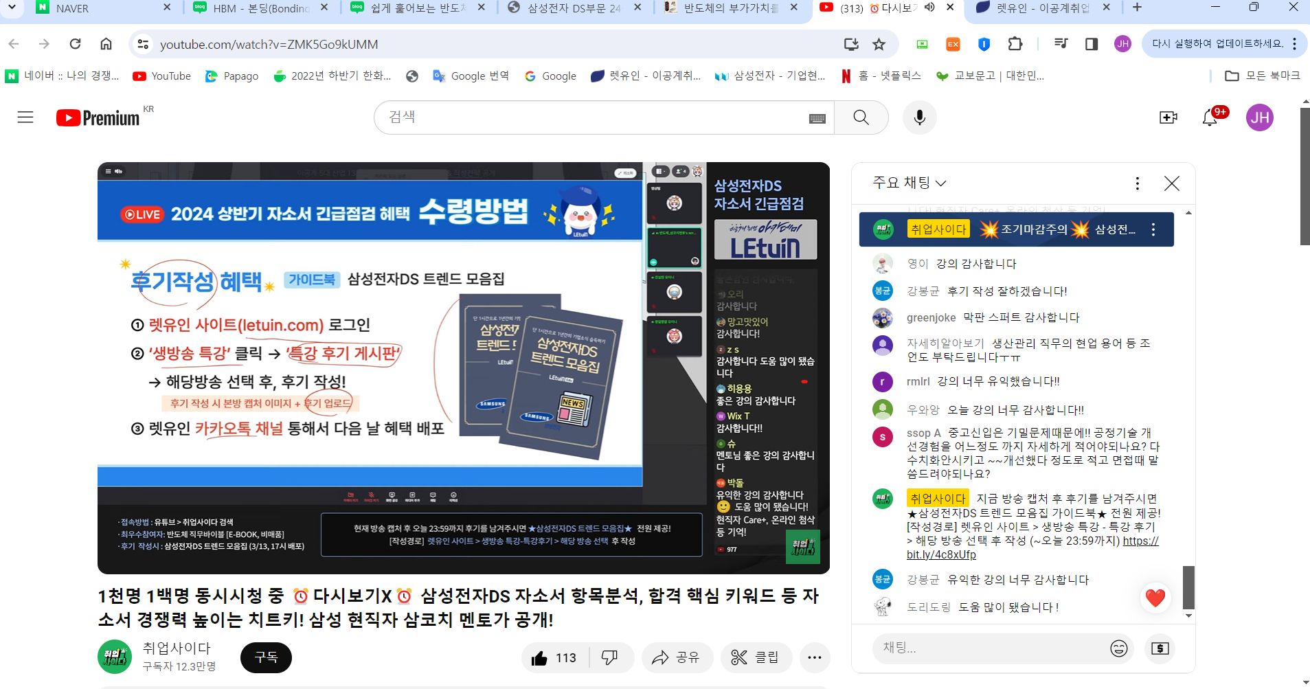 렛유인 생방송 취업특강