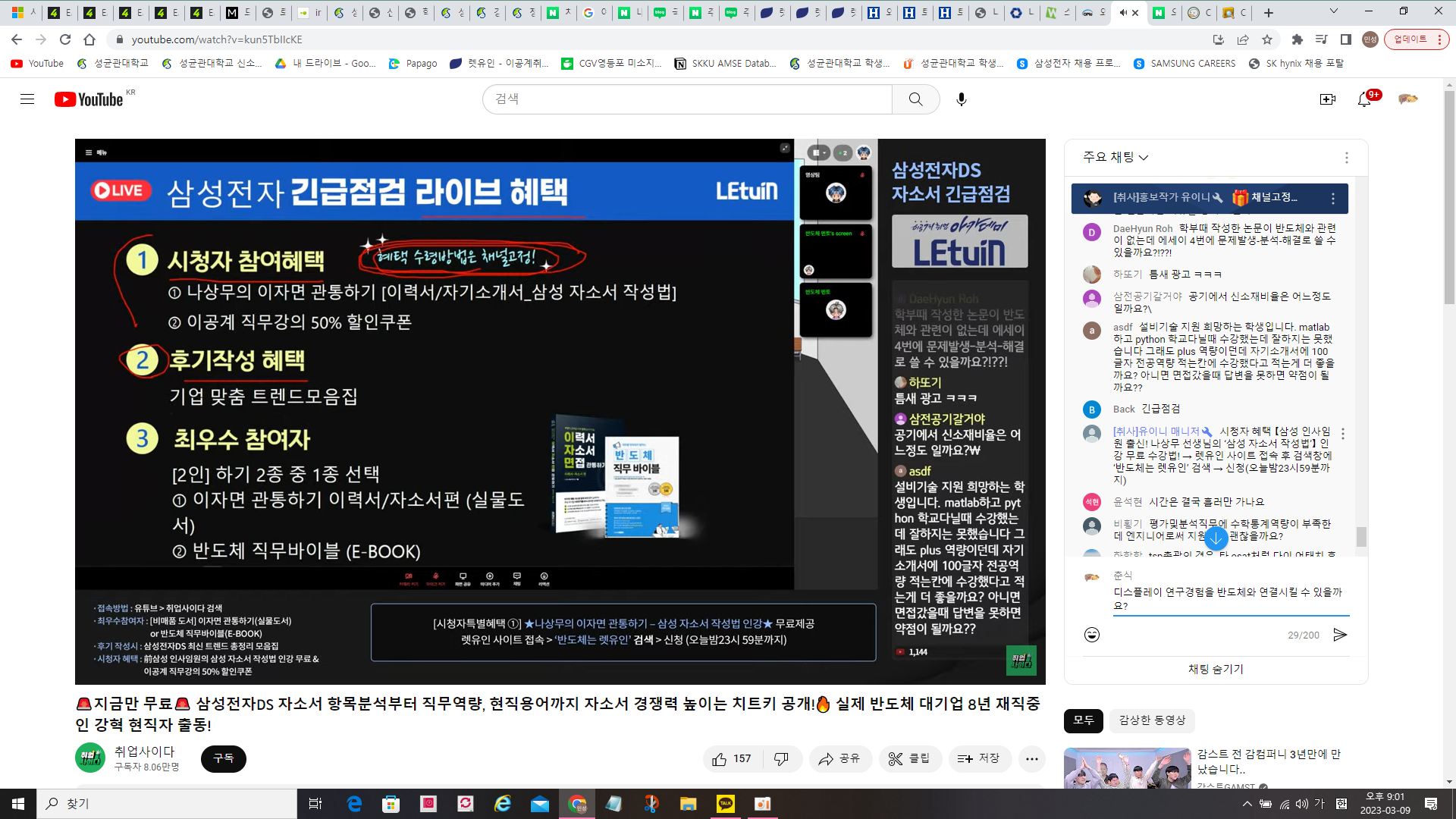 삼성전자 지원기간이 짧기도 하고 자기소개서 준비가 미흡한 상태라 어디서부터 시작해야 하는지 너무 막막했는데 우연히 렛유인 채널이 보내준 자소서 긴급점검 라이브 소식을 본 것이 정말 다행이었습니다. 1시간의 짧은 시간이었음에도 불구하고 강사님께서 컴팩트하고 요점만 짚어서 강연해주신 덕분에 자소서를 어떻게 써야 할지에 대한 가이드라인이 잡힌 것 같습니다. 저에게 정말 소중한 시간이었습니다 정말 감사드립니다!!