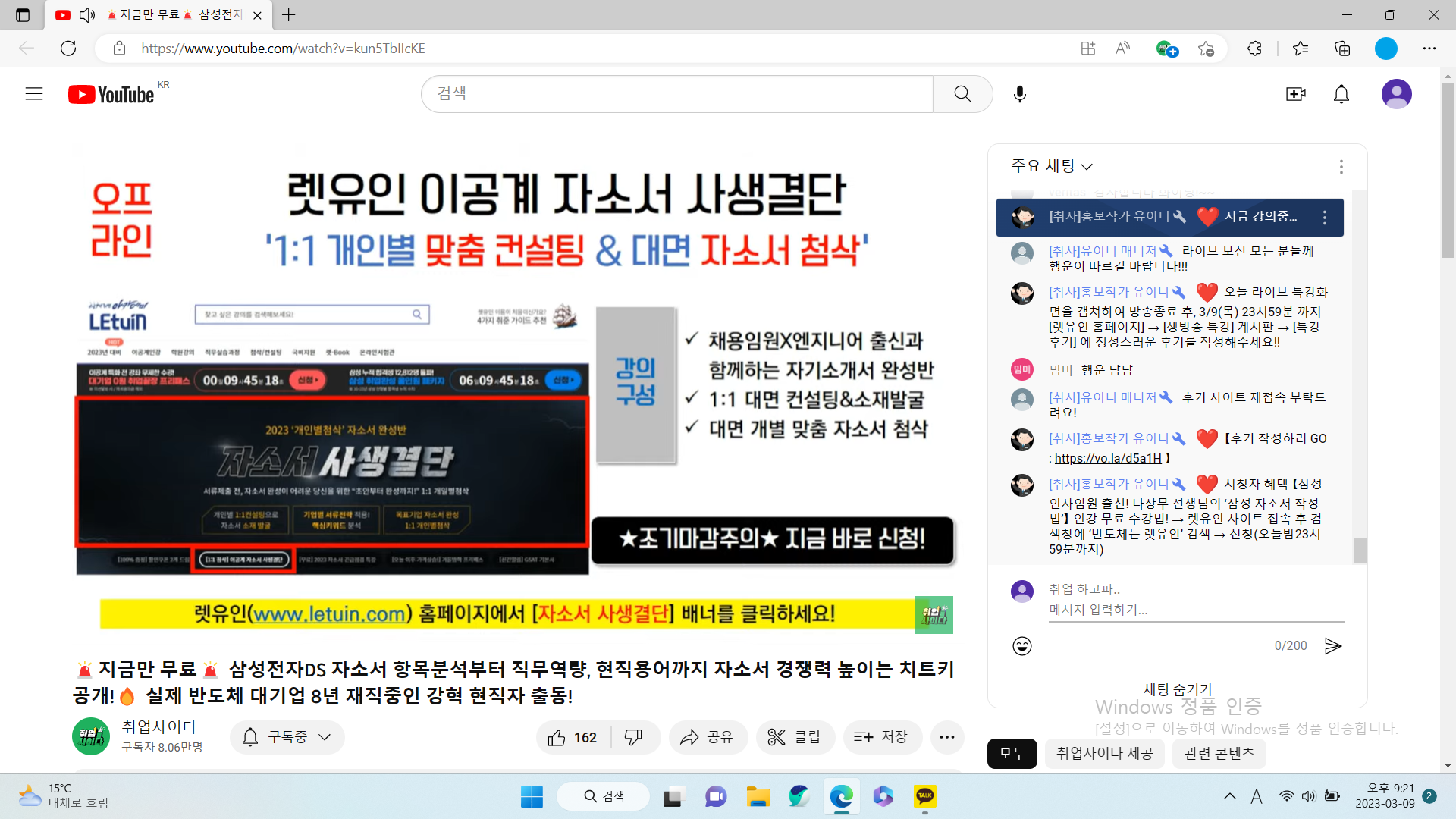 너무나도 유익했던 시간이었습니다. 남은 공채기간 동안 오늘 강의를 바탕으로 열심히 자소서를 작성해서 좋은 결과 가져오겠습니다!! 앞으로도 좋은 강의 많이 해주셨으면 좋겠습니다!! 삼전 취뽀 가즈아!!
