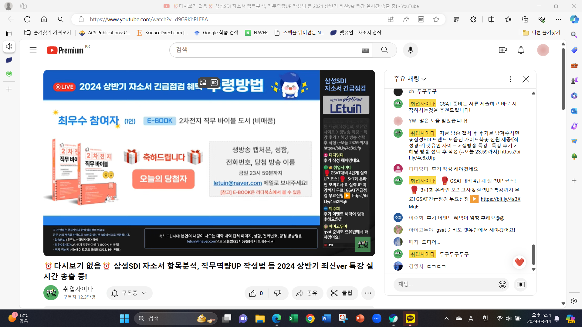 어쩔 수 없는 녹화 방송이라서 질의 응답 시간이 없어서 아쉬웠지만, 강의가 정말 알차서 만족합니다~! 방향 잘 설정해서 서류 제출 하겠습니다! 생방송 시청 인증 이미지