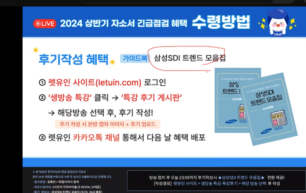 자기소개서 문항별 어필 방법에 대해 자세히 배울 수 있는 기회였습니다. 긴급점검 영상을 토대로 부족한 점을 수정하여 서류합격하도록 하겠습니다. 감사합니다. 생방송 시청 인증 이미지