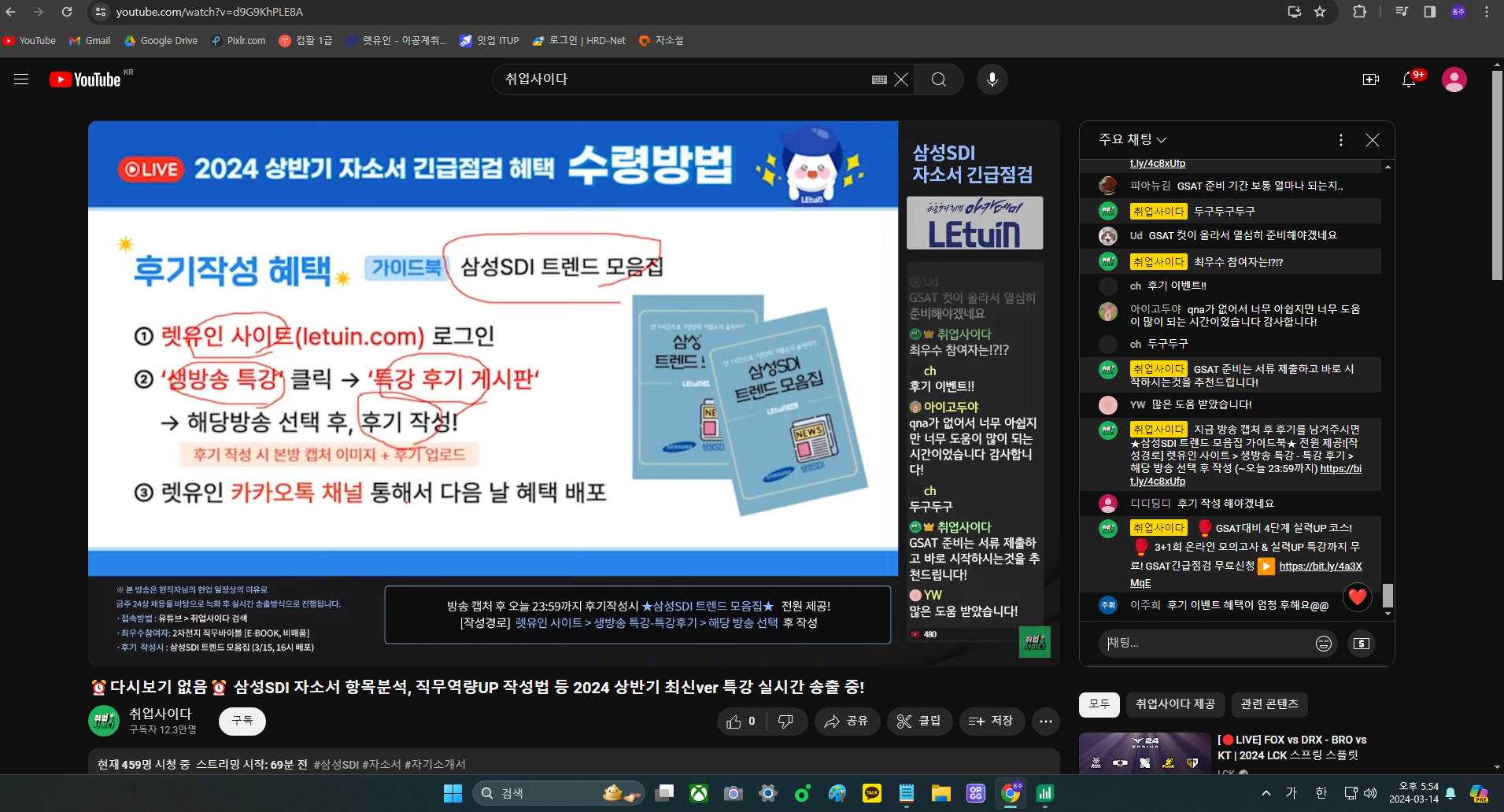 제가 했던 경험들을 잘 녹여야 할 거 같습니다. 다시 자소서를 작성하면서 이 부분들을 한번 더 생각하면서 잘 써보겠습니다. 생방송 시청 인증 이미지