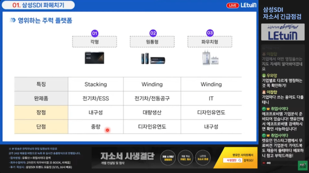 자소서 작성에 필요한 SDI의 사업 영역과 이슈 등에 대해 한번 더 더블체크하게 되어 좋은 시간이였습니다.