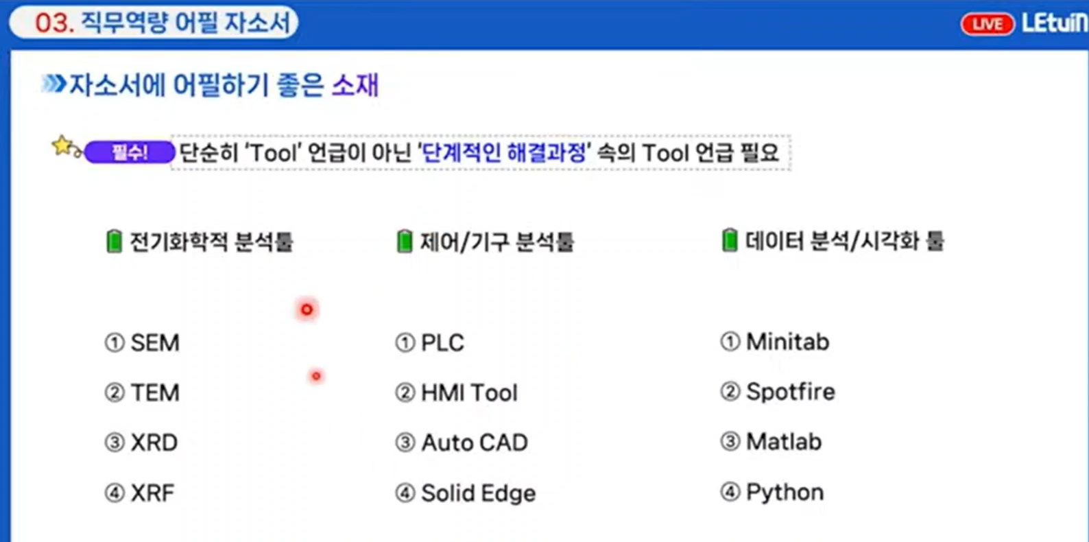 또한, 어필하면 좋아해야할 용어와 잘 쓴 예시를 보여주어 좋았습니다. 삼성 ESSAY 1, 2,3, 번 각각 작성법에 대해 알려주셨습니다 3. 수강후기