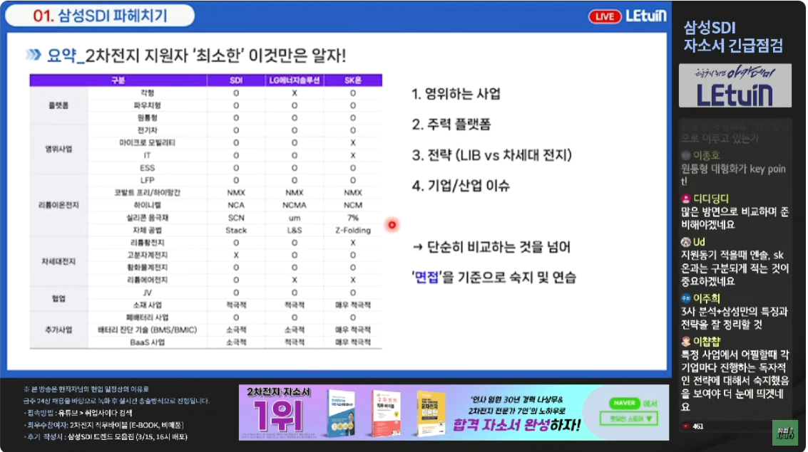 삼성SDI 생방송 자소서 긴급점검 후기입니다.