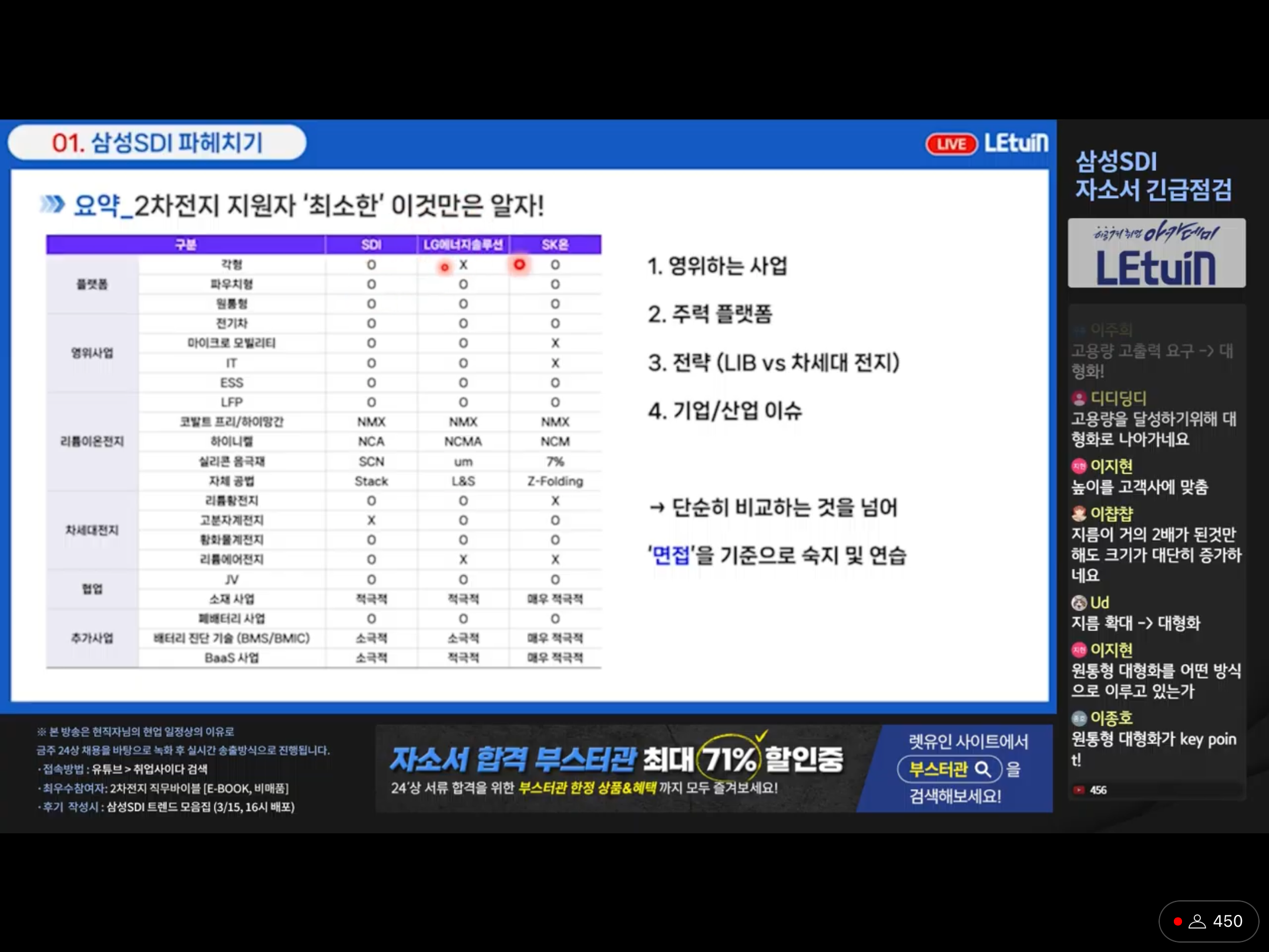 삼성SDI 기업에서 꼭 알아야 하는 내용을 설명해주셨습니다.