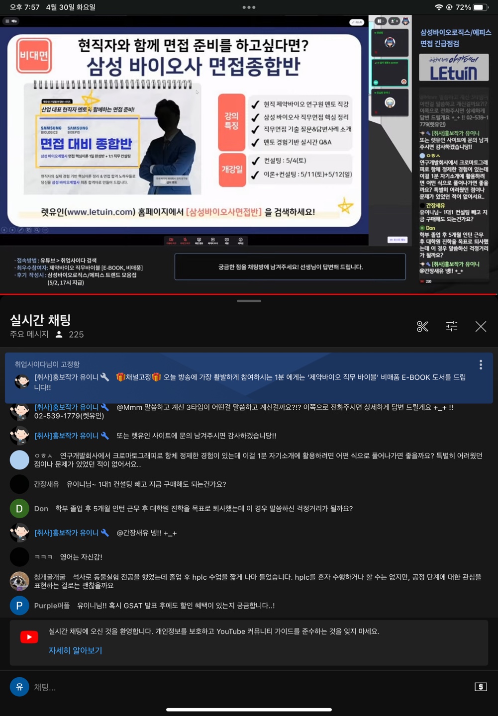 예시와 설명이 많은 도움이 되었습니다. 알려주신 내용 바탕으로 면접 대비해보겠습니다. 좋은 강의 정말 감사드립니다. 생방송 시청 인증 이미지