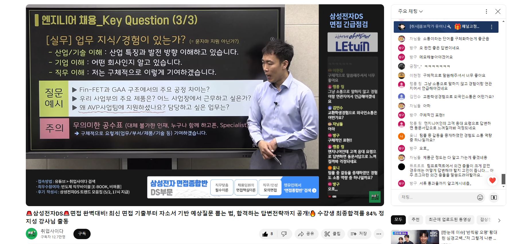 삼성DS 직무면접에 대한 전반적인 사항 및 주의사항을 모두 파악할 수 있었습니다. 특히 직무별 키워드를 통해 어떤 역량들을 어필하고 답변해야하는지 깨닫게 되었습니다. 또한, PT면접을 직접 예시로 보여주시며 구체적인 태도, 방법에 대해 알 수 있어 매우 유익했습니다.