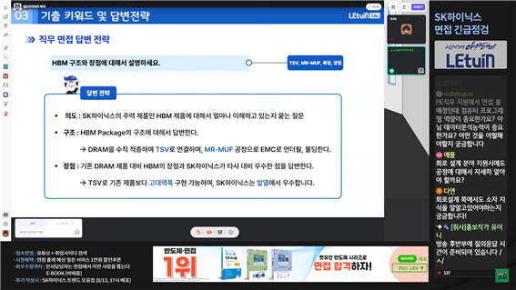 청주(NAND주력) / 이천(DRAM주력) / 분당캠퍼스(솔루션) -이슈1_AI 메모리 : PIM / CXL -이슈2_HBM : TSV, MR-MUF사용 -면접 : 직무적합성 / 문화적합성으로 구성 -직무마다 업무내용과 관련전공, 삼전 유사직무매칭 -대표 기출 질문 : NAND,HBM의 구조/동작원리/ 장점 대해서 설명가능해야함. 3. 수강후기