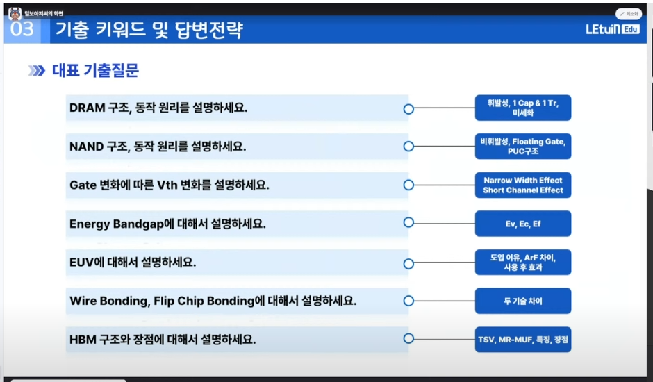 sk 하이닉스에서 주목해야 할 기술들과, 면접을 준비하기 위해 알아야 할 점들을 알아갈 수 있었으며, 취준을 위해 필요한 내용에 대해 잘 대답해 줘서 이를 통해 취업 준비에 대해 많은 도움이 되었습니다.