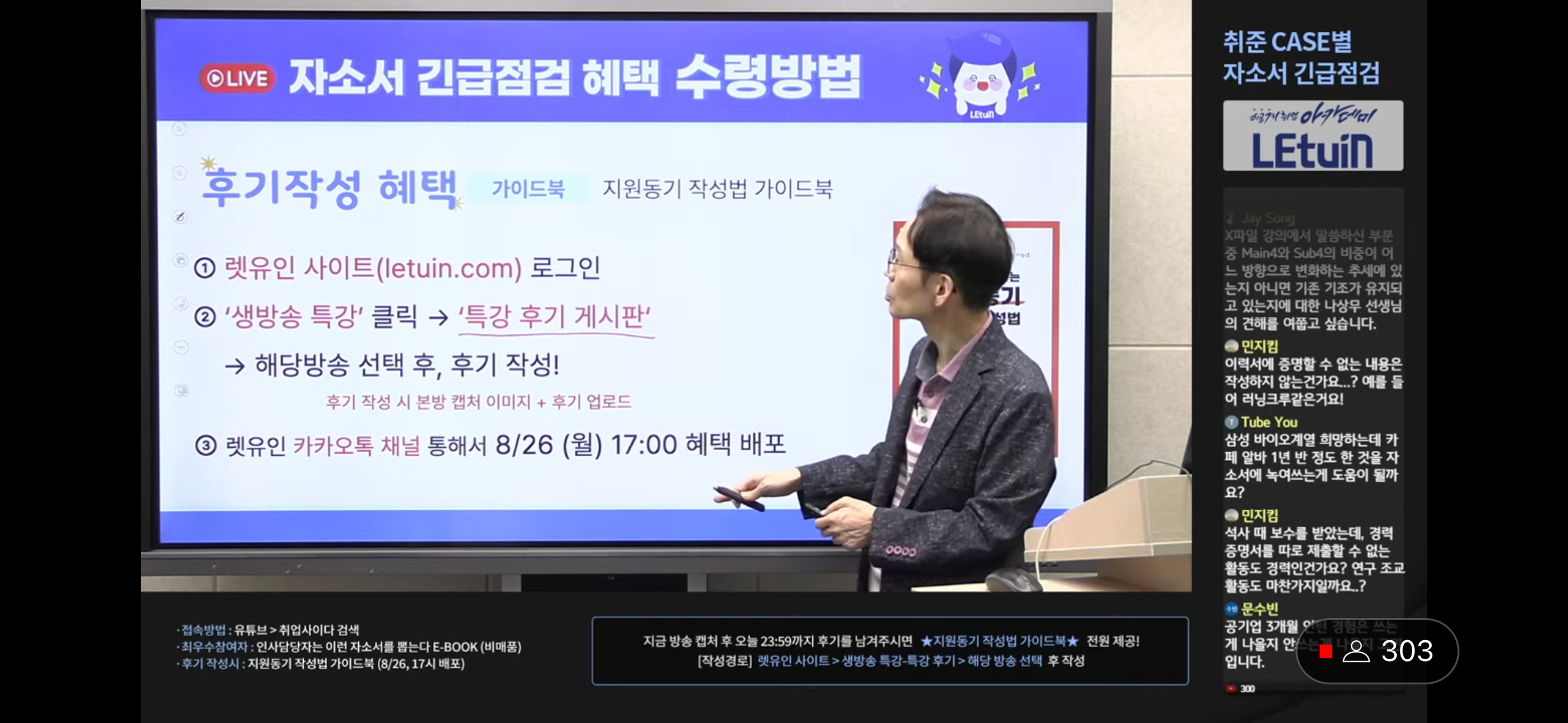 자소서 작성법이 막막했는데 보기쉽게 정리해주시고 팁까지 다 주시고 특히 q&a 시간때 더욱 도움이 됐던 거 같습니다. 이제 취준을 시작해 첫단계인 자기소개서에서 막히면 뒤에 면접준비까지 너무 힘들거라 생각했는데 오늘 강의가 특히 도움됐던거 같습니다.