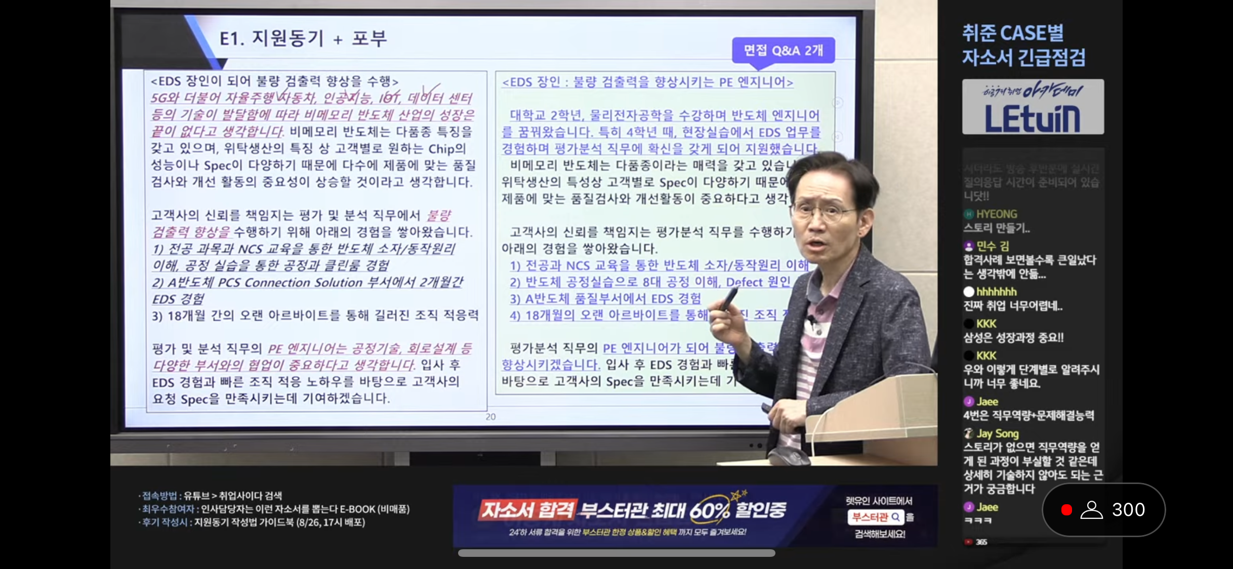기업별로 자소서를 어떤 전략으로 작성해야 하는지 배웠습니다. 실제 자소서를 바탕으로 설명해주셔서 이해가 잘 되었습니다. 구체적인 설명 감사드립니다. 그리고 질의 및 응답시간에도 평소에 궁금했던 것들을 속시원히 알 수 있었습니다.