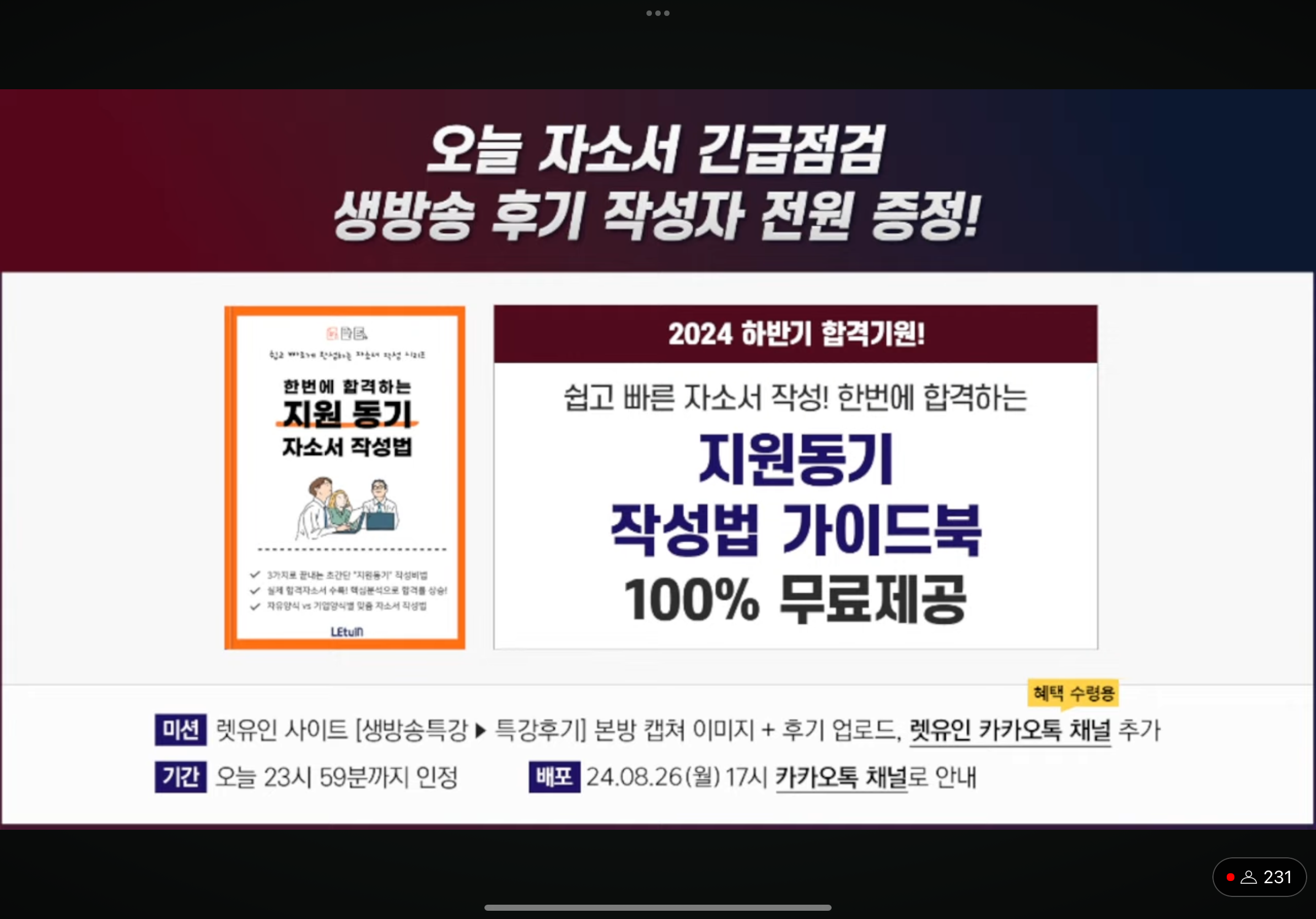 아직 자소서를 본격적으로 써보지 않아서 자소서에 들어가야할 항목이 어떤 것들이 있을까릉 고민하는 중이었는데, 이번 특강으로 더 갖추어야 할 활동과 보충해야할 교육사항에 대해 생각해볼 수 있어서 유익했습니다.