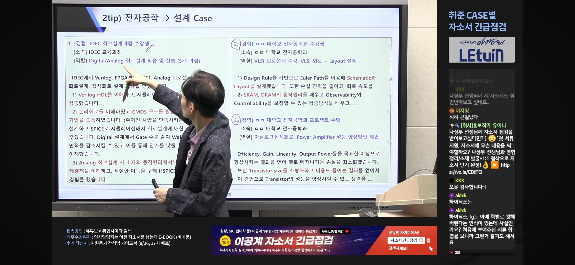 자소서 작성의 감을 하나도 못잡고 있었는데 1시간 정도의 무료 특강을 수강하고 어느 정도 자소서 작성의 방향성을 생각해 볼 수 있었습니다. 우선적으로 경험 정리를 하고, 모집 공고가 뜨기 전에 미리미리 자소서를 작성해봐야겠다는 필요성을 느꼈습니다.