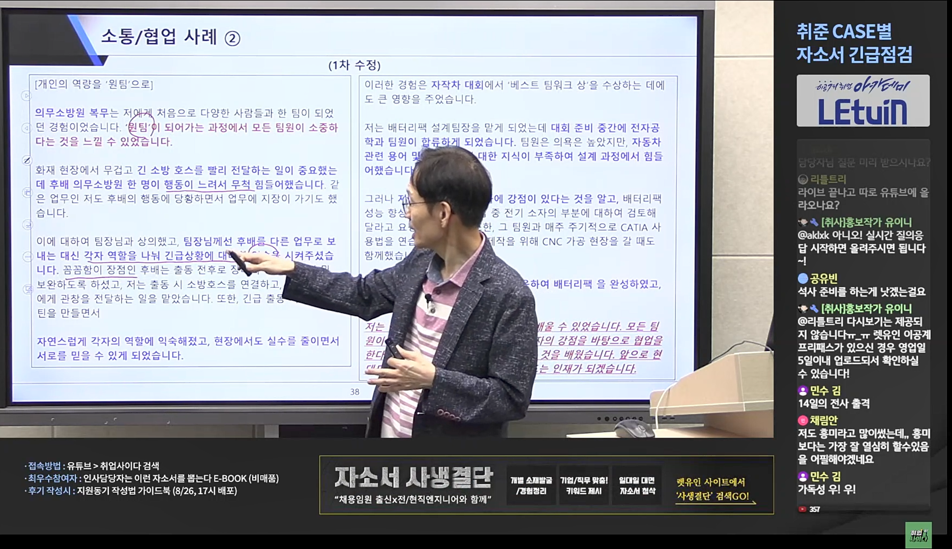 첫 취준을 시작하는 취린이로써 자소서 소재 찾기부터 작성까지 어떻게 작성하면 좋을 지 굉장히 구체적이고 체계적인 가이드라인을 주셔서 앞으로 남은 기간동안 어떻게 해야할지 감이 잡혔습니다. 좋은 강의해주셔서 감사합니다.