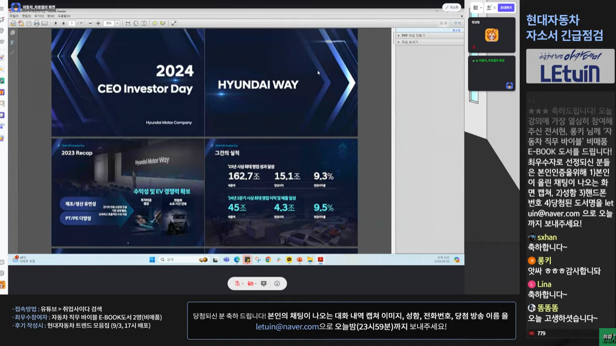 설계, 품질, 전동화 등등 각각의 직무에 대해 특별히 보면 좋은 것들, 또한 정보를 얻을 수 있는 방법들을 알려주셨습니다. 특히 해당 내용들을 자소서에 접목시킬 수 있는 방법들도 함께 알려주셨습니다.