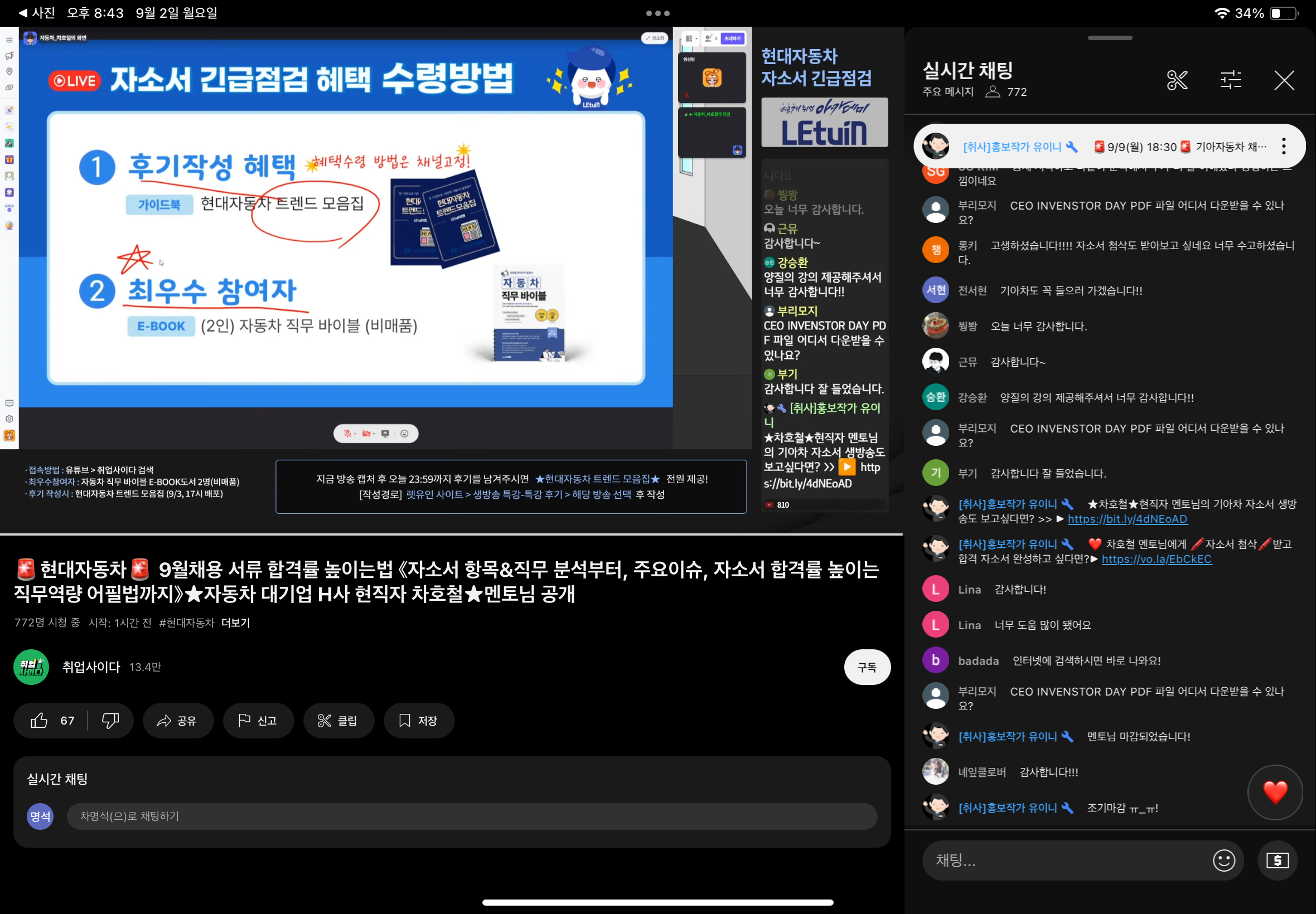 자소서를 작성해야되는 가닥에 대해서 많이 배울 수 있었고, 특히 채용 공고문을 통해서 얻을 수 있는 정보가 많다는 것이 특히 많이 도움되었던 것 같습니다. 또한 샤시 공정을 예로 들며 설명해주신 내용이 매우 인상깊었고, 얻어갈 게 정말 많았던 강의였던 것 같습니다.