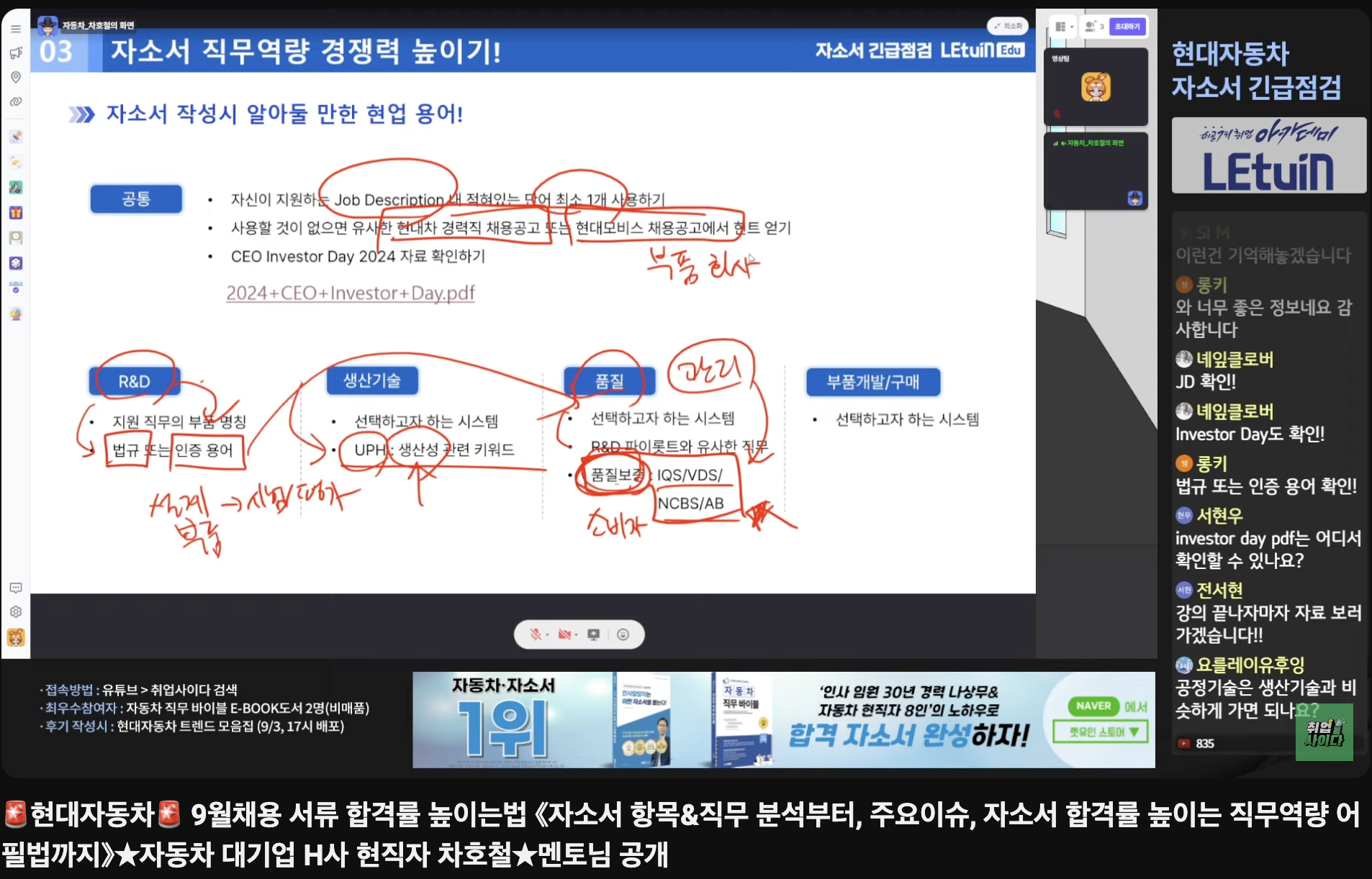 또한 현대 자동차 자소서 작성 전략부터 자소서 항목 분석 방법에 대한 내용이 포함되어 있었습니다. 3. 수강후기