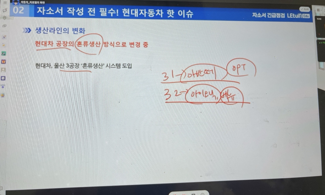 강사님께서 말씀해주고싶은거 파트별로 나누어서 상세하게 알려주시는 점이 좋았습니다. 그리고 현대자동차만 계속 고집했었는데 기아나 현대모비스도 지원해봐야겟다는 생각이 들었습니다!!!!