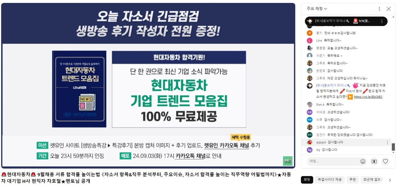 취준 하는데 있어 많은 도움이 될 것 같습니다. 유익한 정보 들으러 라이브 방송 열심히 참여 하겠습니다! 감사합니다! 생방송 시청 인증 이미지