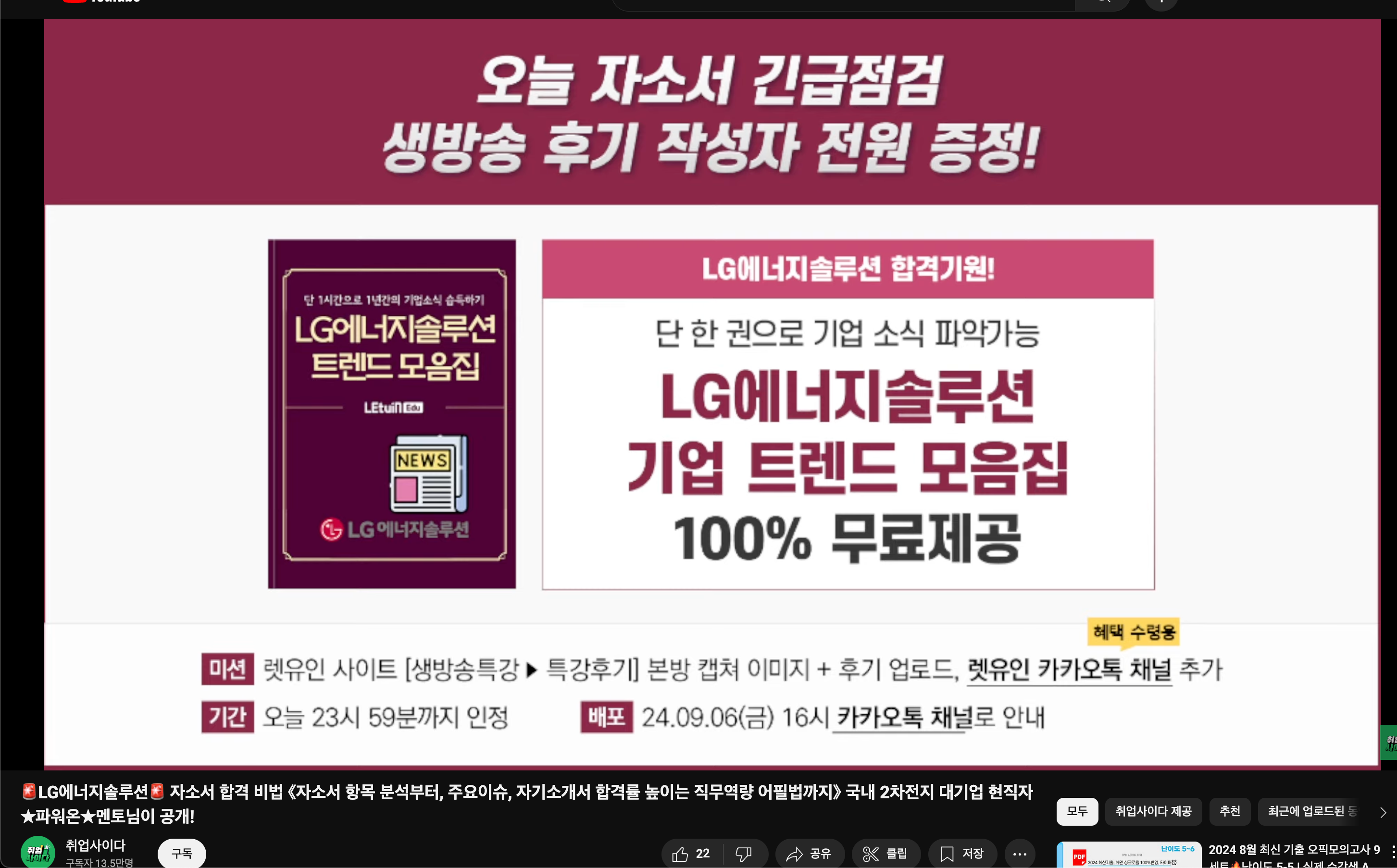 소제목이 굉장히 중요하다고 말씀해 주셨습니다. 비슷한 이야기들을 많이 들어봤지만 굉장히 자세한 이야기들과 사례들로 이차전지 분야에서 자소서를 어떻게 쓰면 ㄷ좋은지에 대한 이야기르 많 이 해주셔서 굉장히 도움이 되었습니다.