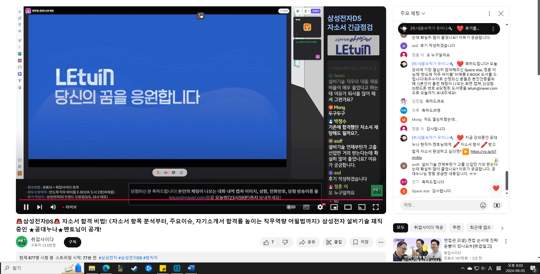 렛유인 생방송 취업특강