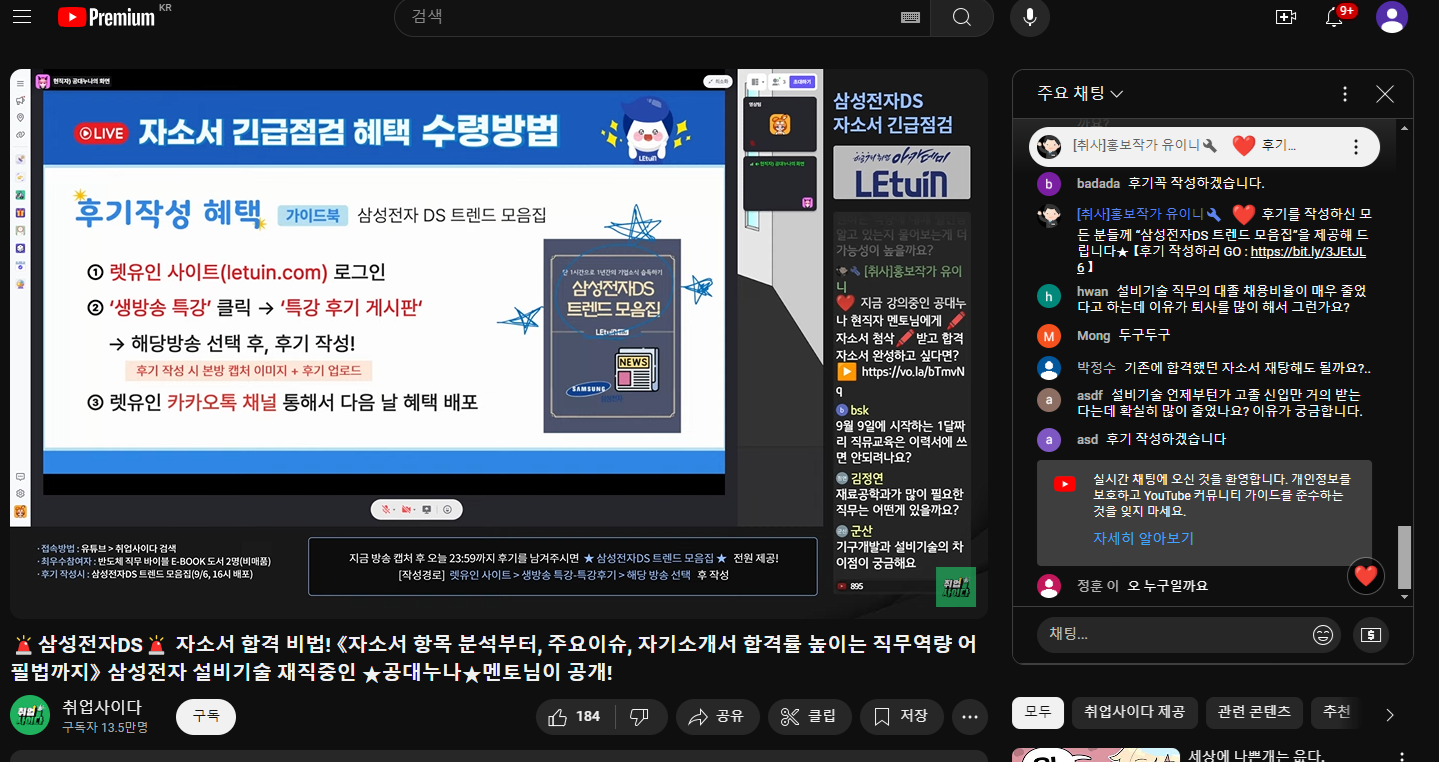 삼성전자DS에서 진행되는 채용 전형부터, 반도체 산업에서 필요한 용어정리, 자소서 문항정리 등 알찬 내용으로만 구성된 특강이었습니다. 문항별로 정리해준 것도 좋았고, 트렌드를 알 수 있는 여러 방법들을 소개시켜준 것도 좋았습니다.