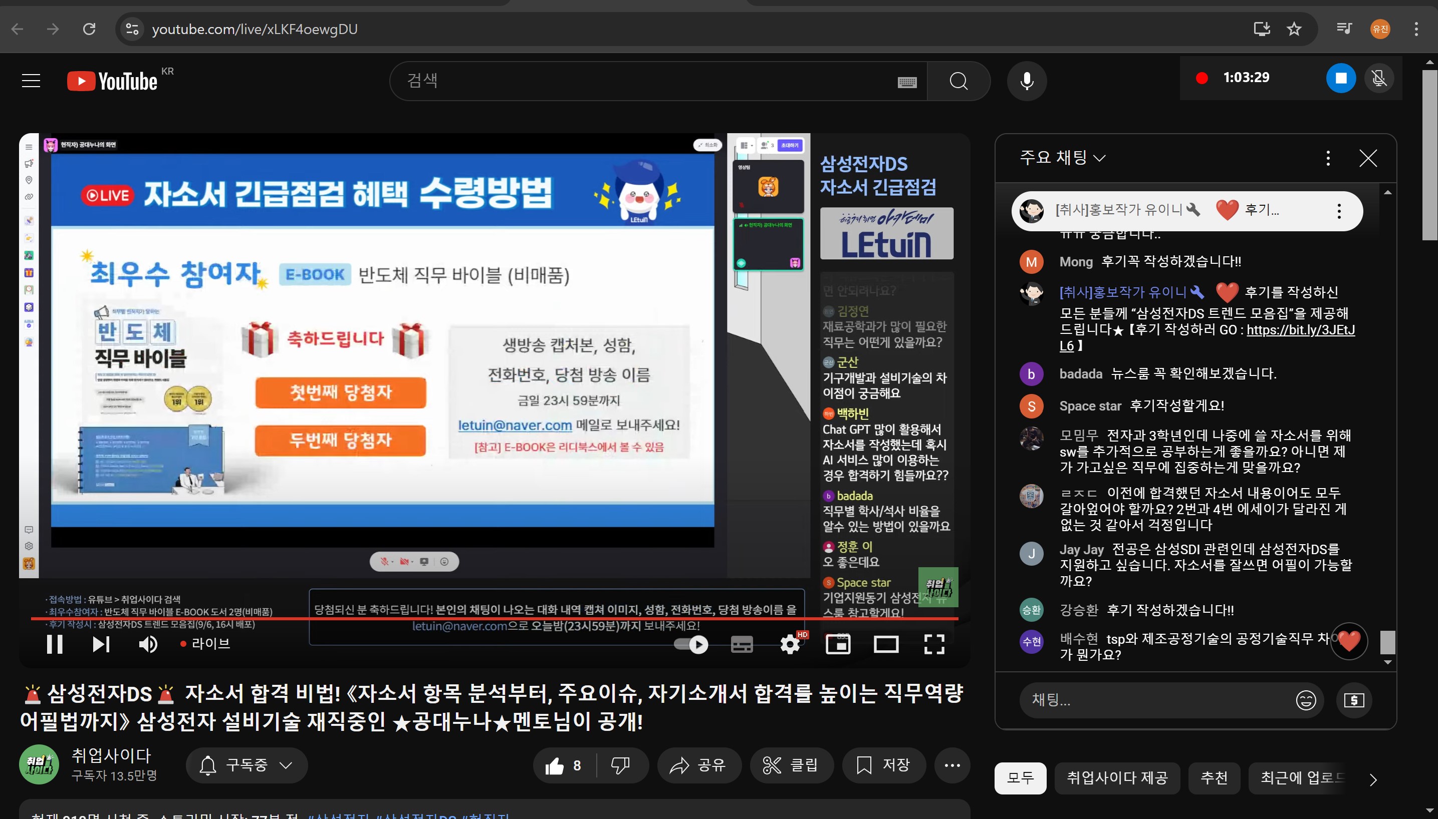 렛유인 생방송 취업특강