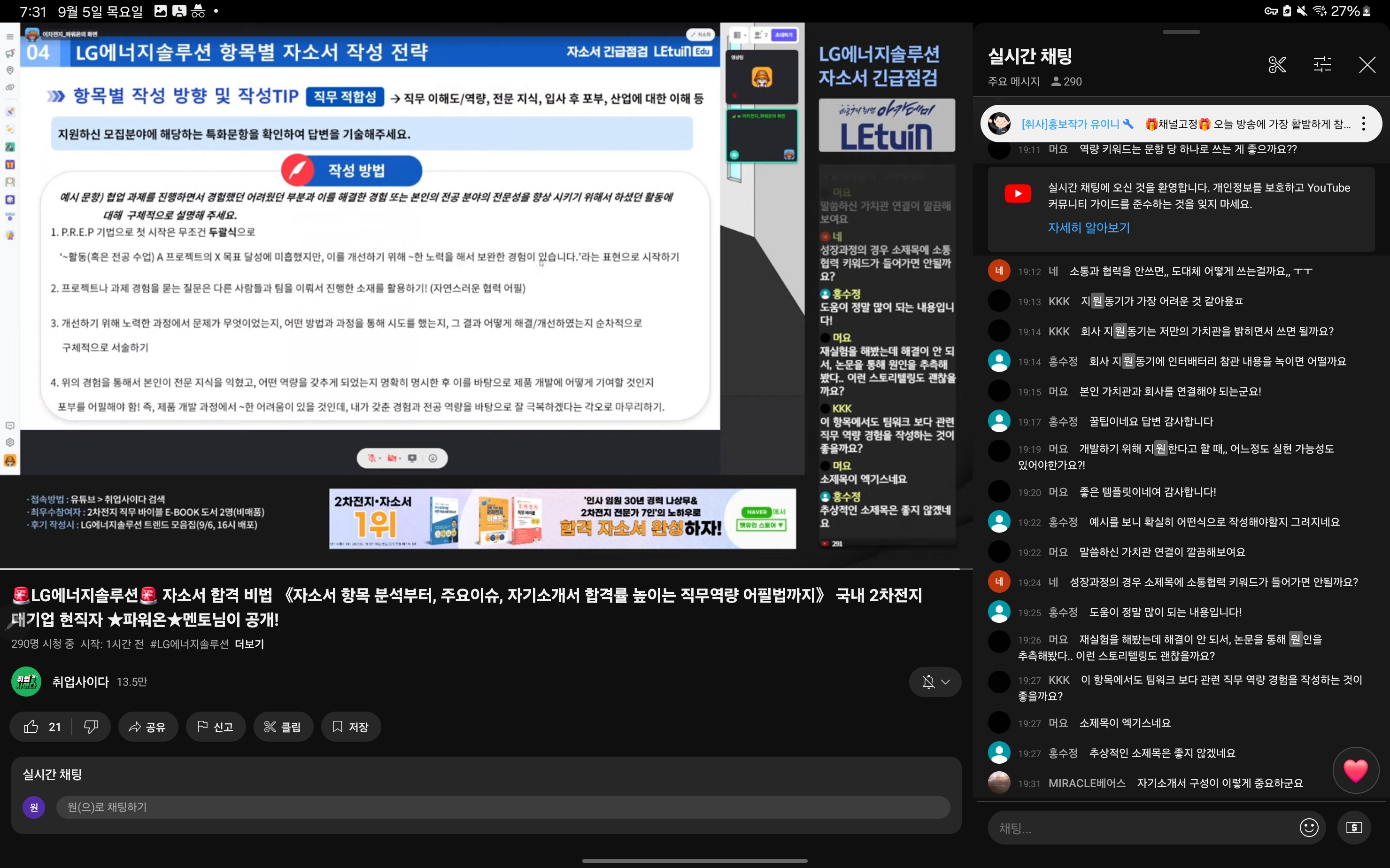 렛유인 생방송 취업특강