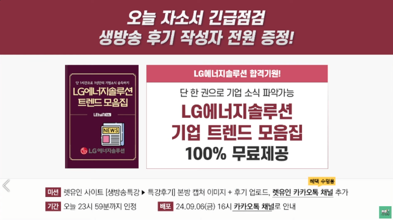 LG엔솔 자소서 특강에서는 기업이 원하는 인재상을 중심으로 자소서를 어떻게 작성해야 하는지에 대한 구체적인 가이드를 제공했습니다. 특히 지원 동기, 직무 역량, 성과 경험을 효과적으로 표현하는 방법과 함께, 면접 시 중요한 포인트들도 다루어졌습니다. 또한 자주 실수하는 부분에 대한 피드백과 이를 피하는 방법에 대해 설명해 주어 실질적인 도움이 되었습니다