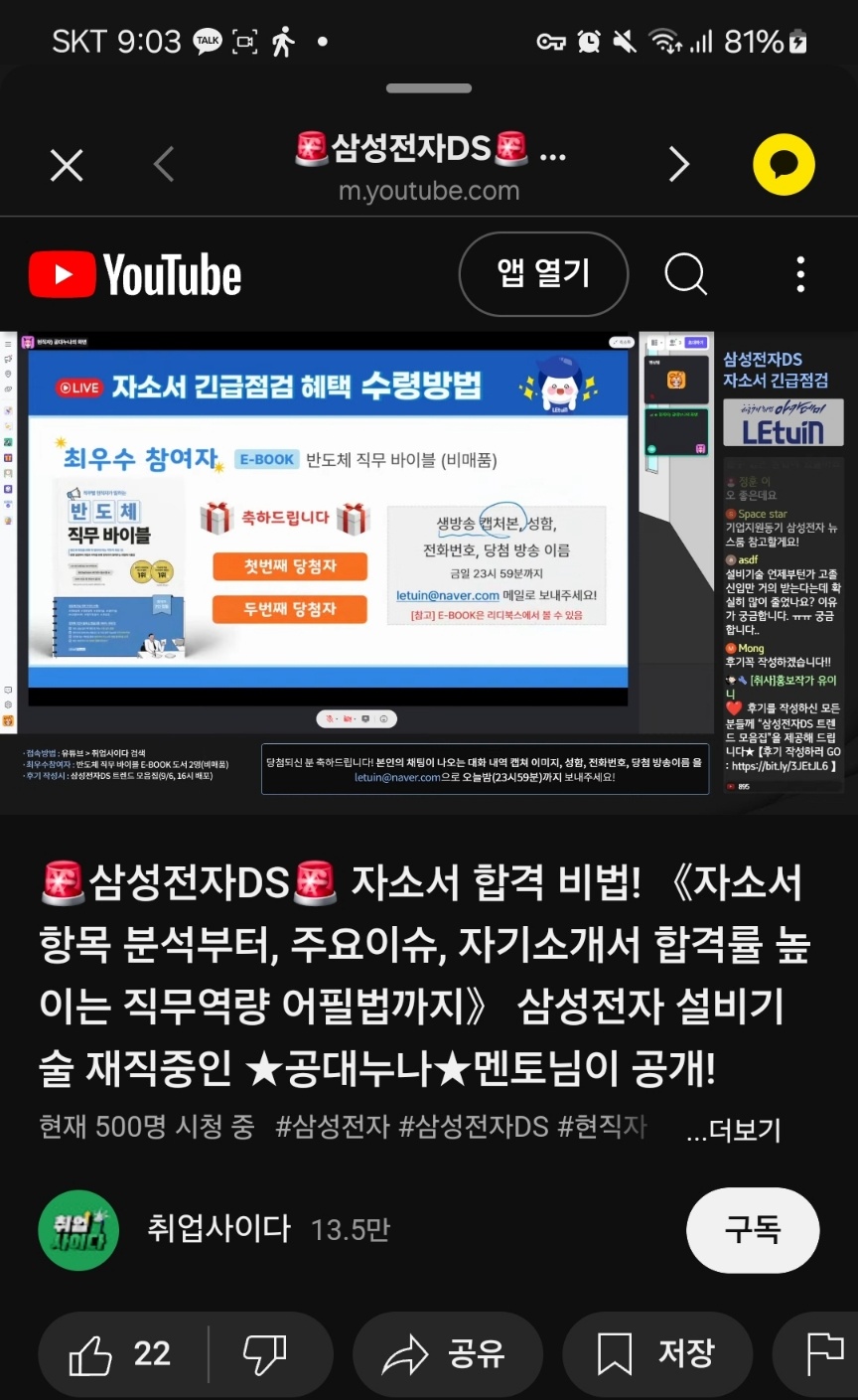 삼성전자 avp부서가 메모리 부서로 이전되며 사라진것과 요즘 트랜드에 맞게 자소서 전략을 설명해주셔서 도움이 됐습니다.