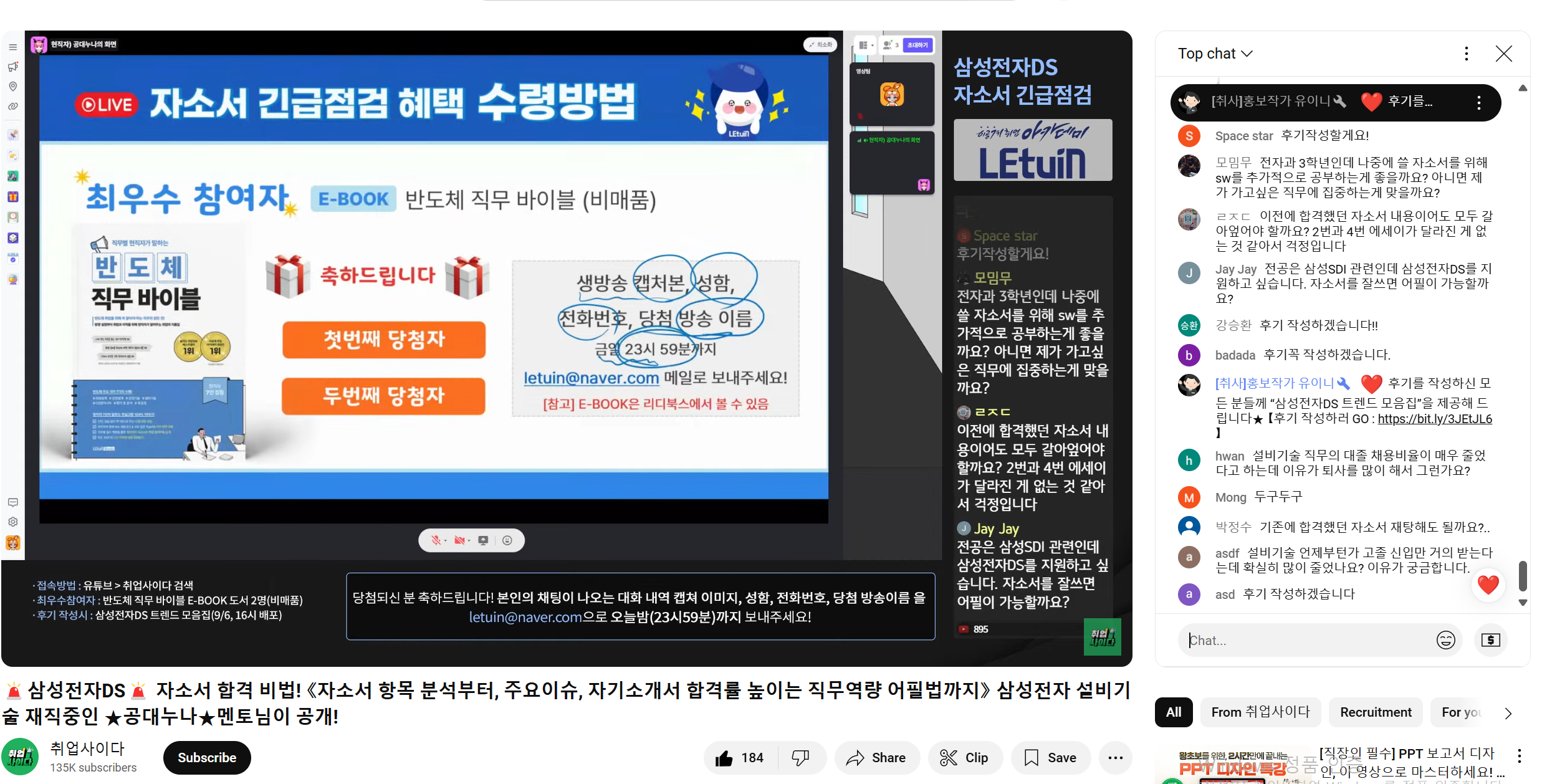 렛유인 생방송 취업특강