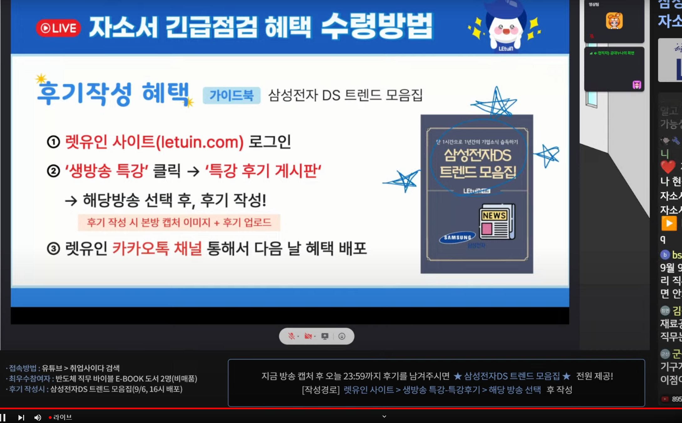 삼성전자의 최근 동향에 대하여 설명을 해주셨고, 삼성전자 DS부문 상반기와 달라진 부분들을 분석하여 주셨습니다. 자소서 문항들을 하나하나 분석하고 어떻게 써야 좋고 나쁜지 설명을 들었습니다.