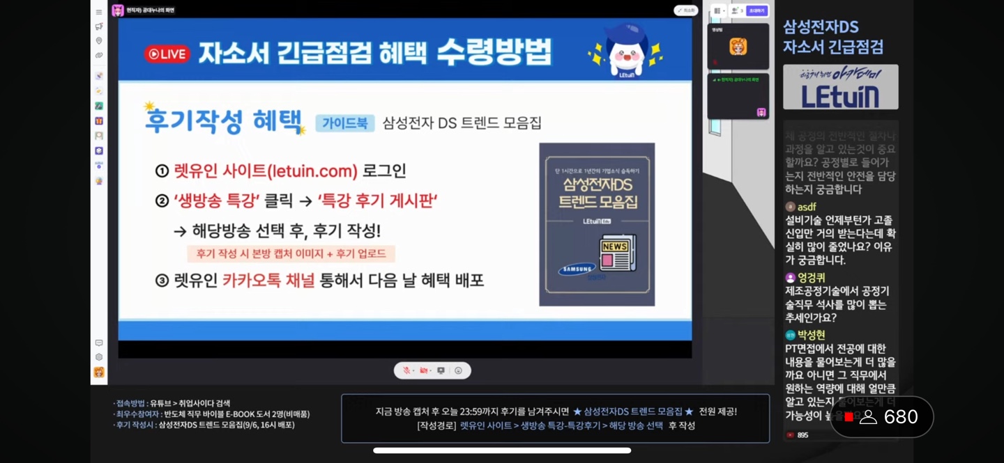 렛유인 생방송 취업특강