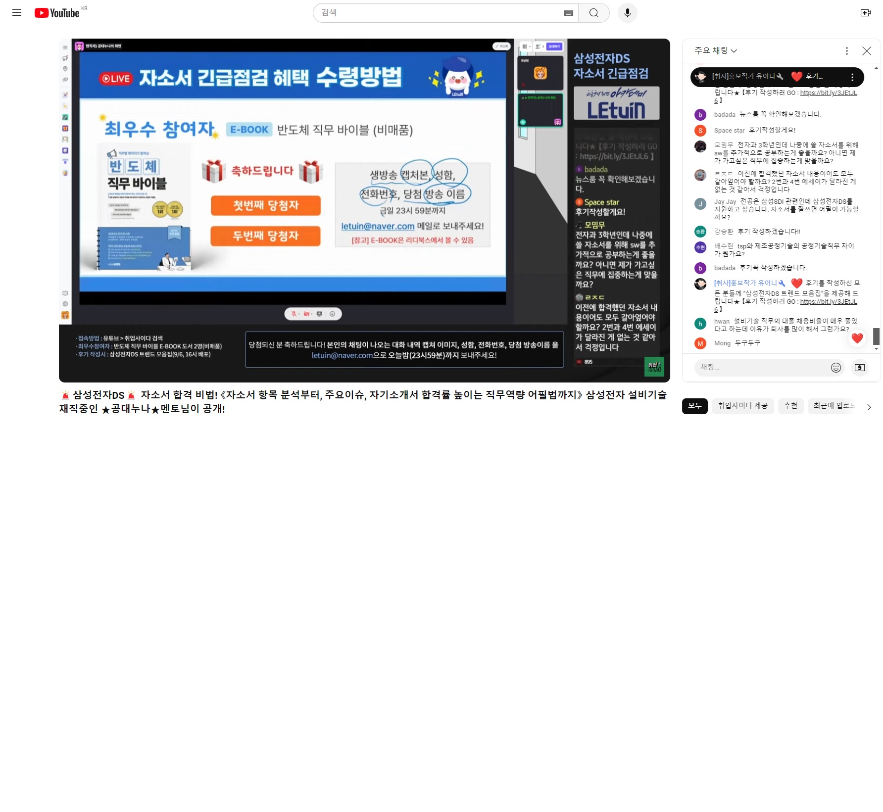 렛유인 생방송 취업특강