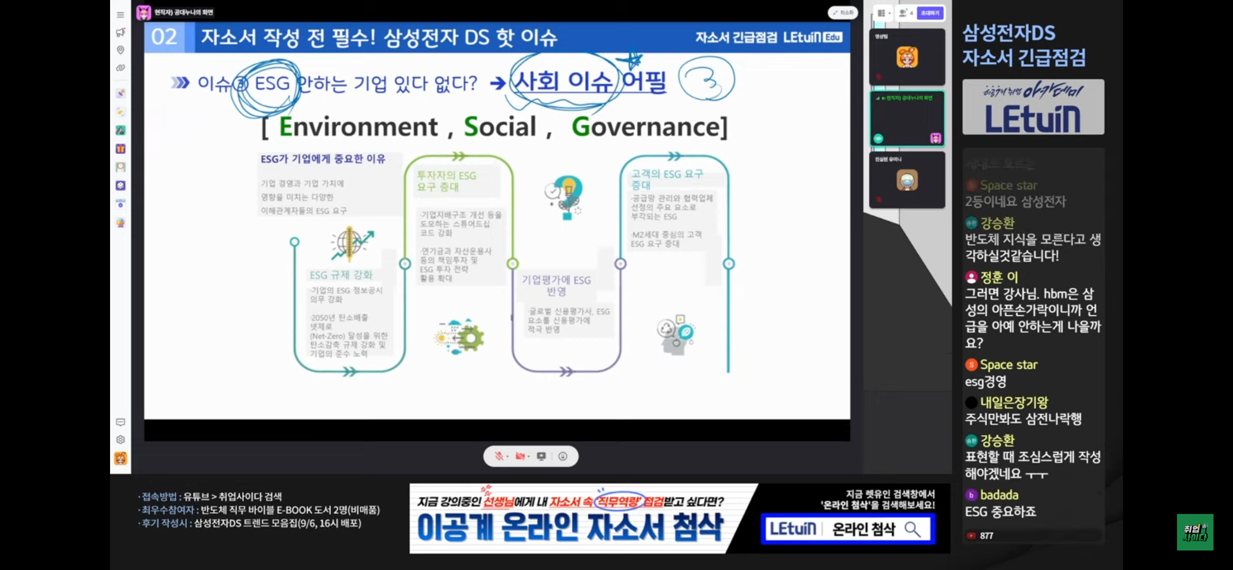 이번 특강을 통해 각 항목별 작성 요령을 새롭게 알게 되었습니다. 또한, 직무별 핵심 역량을 알게되었고 현재 삼성전자의 이슈들에는 어떠한 것들이 있는지도 새롭게 알게되어 매우 유익한 특강이었습니다.