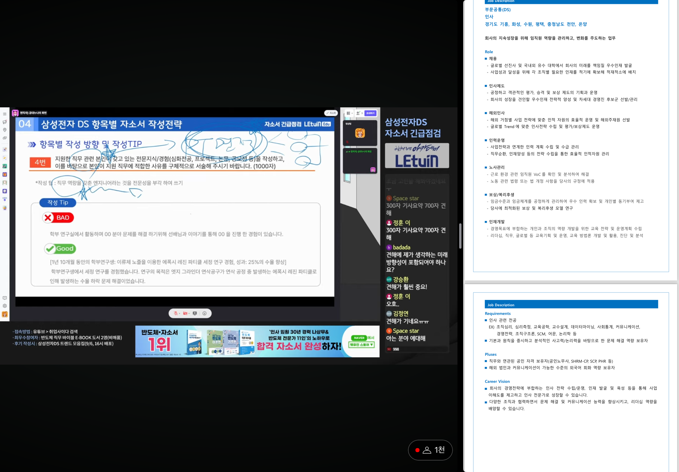 삼전 자소서 중요성과 가이드라인, 옳게 작성된 예시, 지양할 자소서 예시 등 다양한 내용으로 구성되었습니다. 자소서 작성시 참고할 문헌과 다른 준비생들의 궁금점도 엿볼수있었습니다