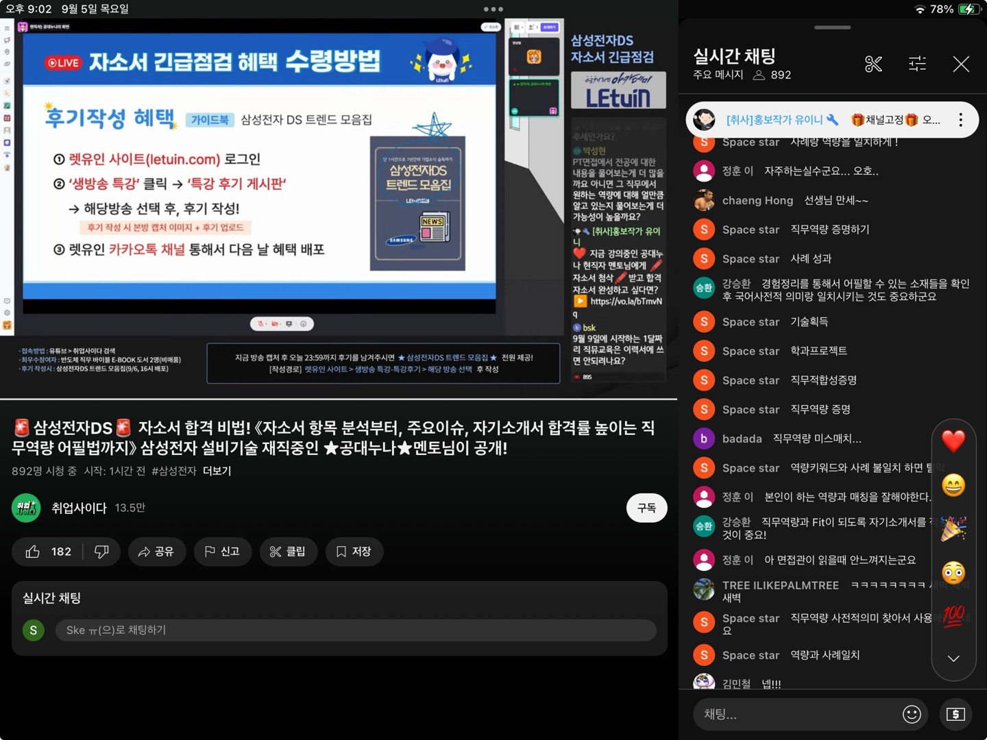 추후 삼성전자에 지원할 때 어떤 점을 준비해야 하는지 미리 알게 되어 좋았습니다. 생방송 시청 인증 이미지