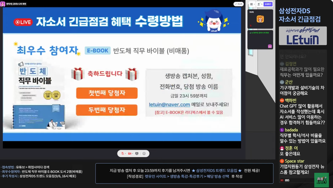 삼성전자 자소서를 작성하는데 막막함이 있었는데 오늘 강의에서 가이드 라인을 제시해주셔서 계획이 좀 잡힌 것 같습니다. 각 항목마다 몇 자씩 어떻게 나누어서 작성해야할지 친절하게 알려주셔서 좋았습니다.