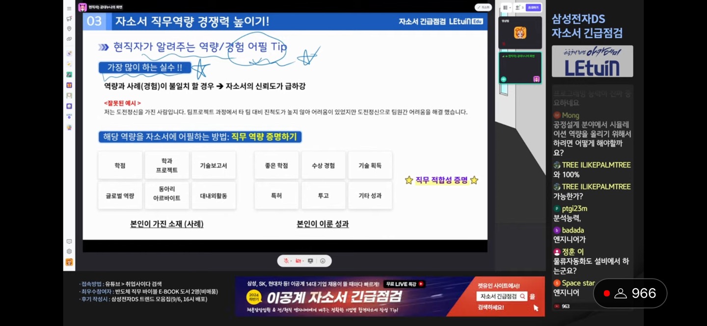 또한, 여러 삼성 내부의 여러 이슈에 대해 알 수 있었고 필수적인 여러 취업 지식을 익힐 수 있었습니다. 생방송 시청 인증 이미지
