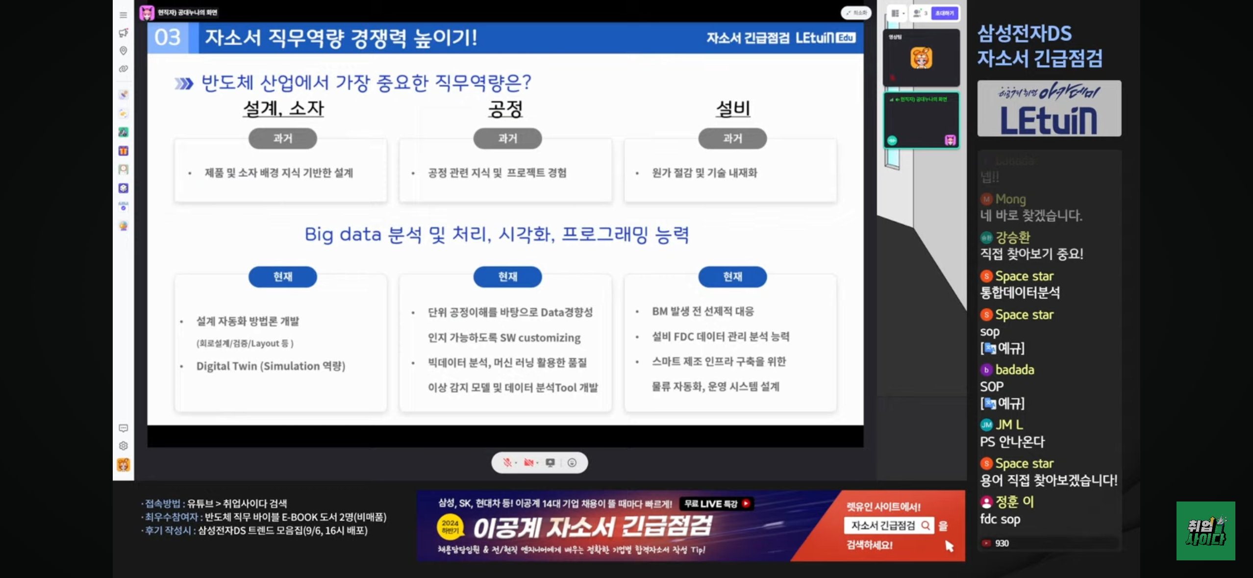 삼성전자 DS 자소서 특강을 통해 전체적인 틀을 잡았습니다.