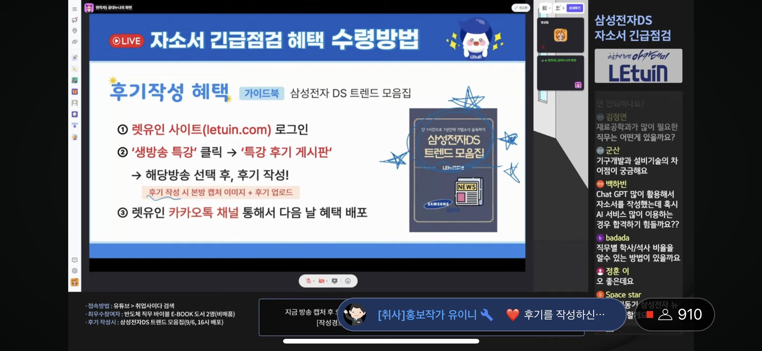 삼성전자 DS 핫 이슈 AI, HBM, ESG 삼성전자 DS 자소서 항목별 작성 전략 및 잘못된 사례 현직자가 알려주는 역량/경험 어필 TIP 3. 수강후기